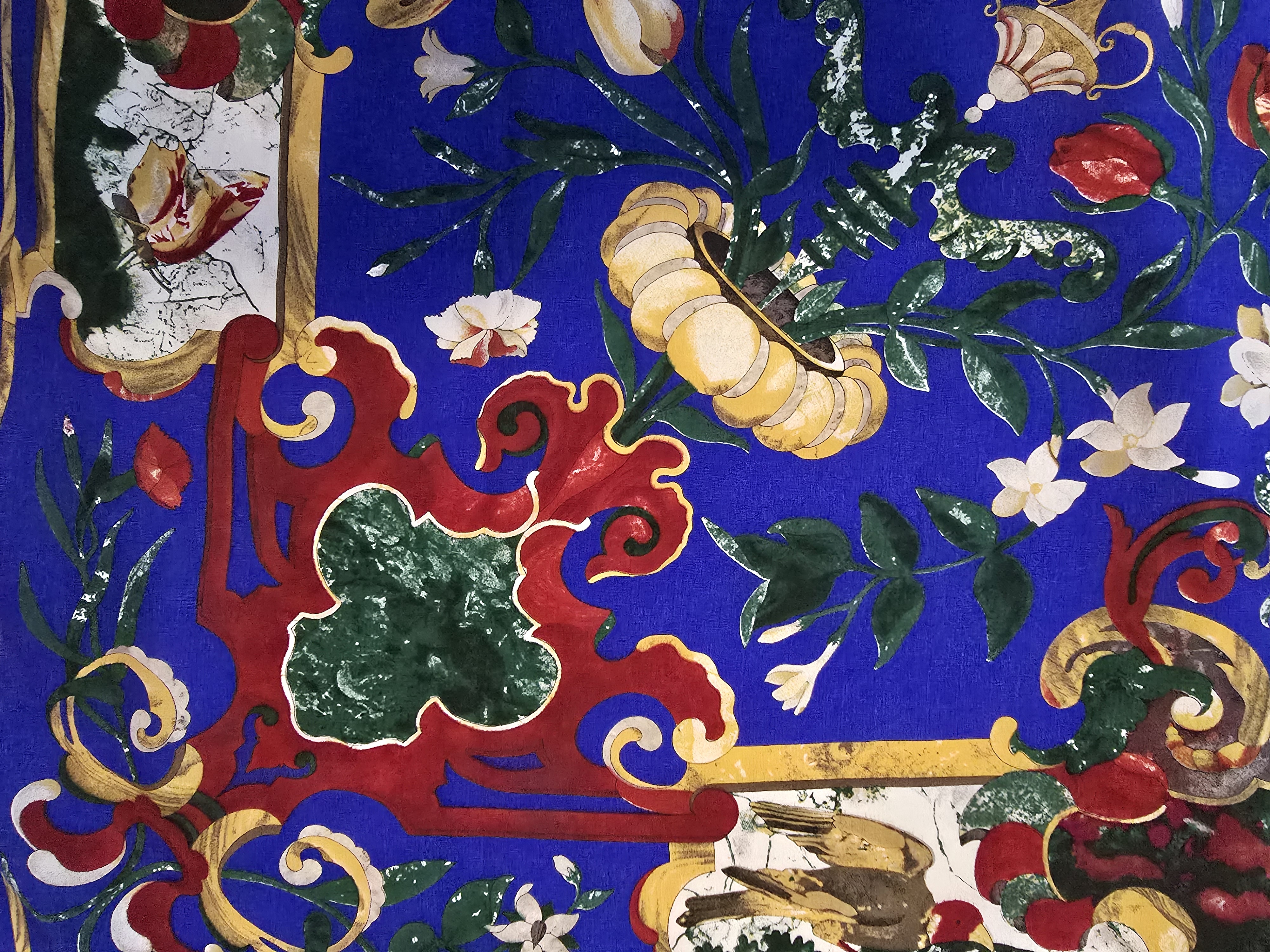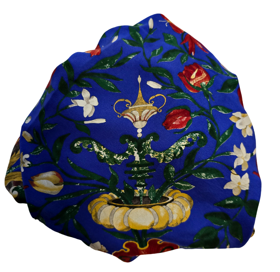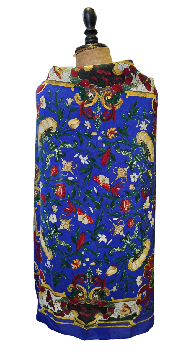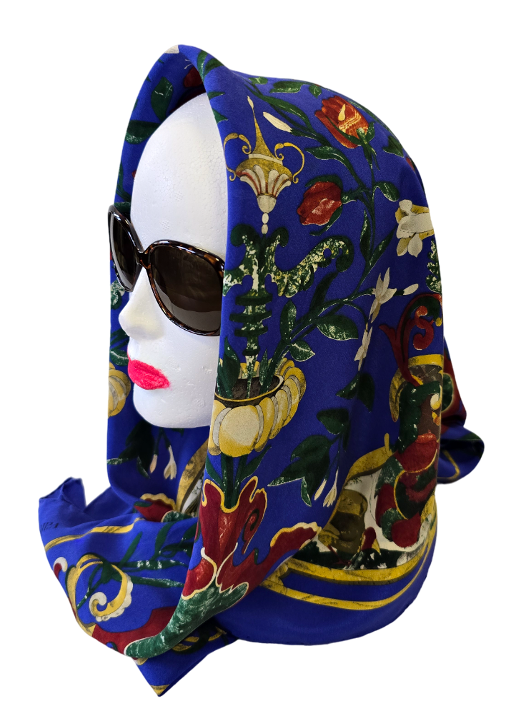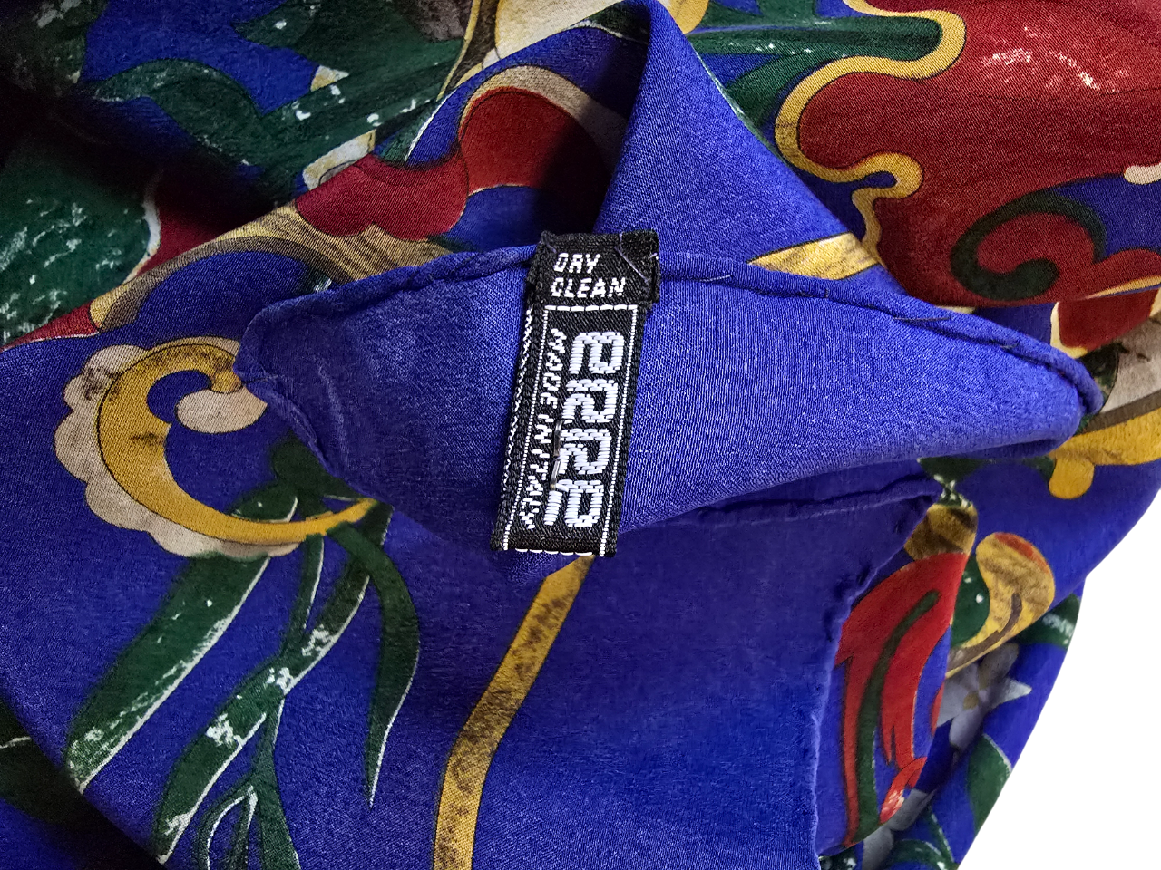 Popis: Šátek značky Valentino modré barvy s motýly a květinami. Hedvábí. Ručně rolované lemy do rubu. V pravém dolním rohu vetkaná signace Valentino. V pravém horním rohu z rubové strany všitá originální visačka (ERRE – označení samostatné řady kolekce). Nečištěno. Nepoškozeno, perfektní stav.