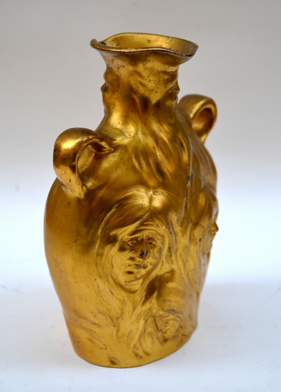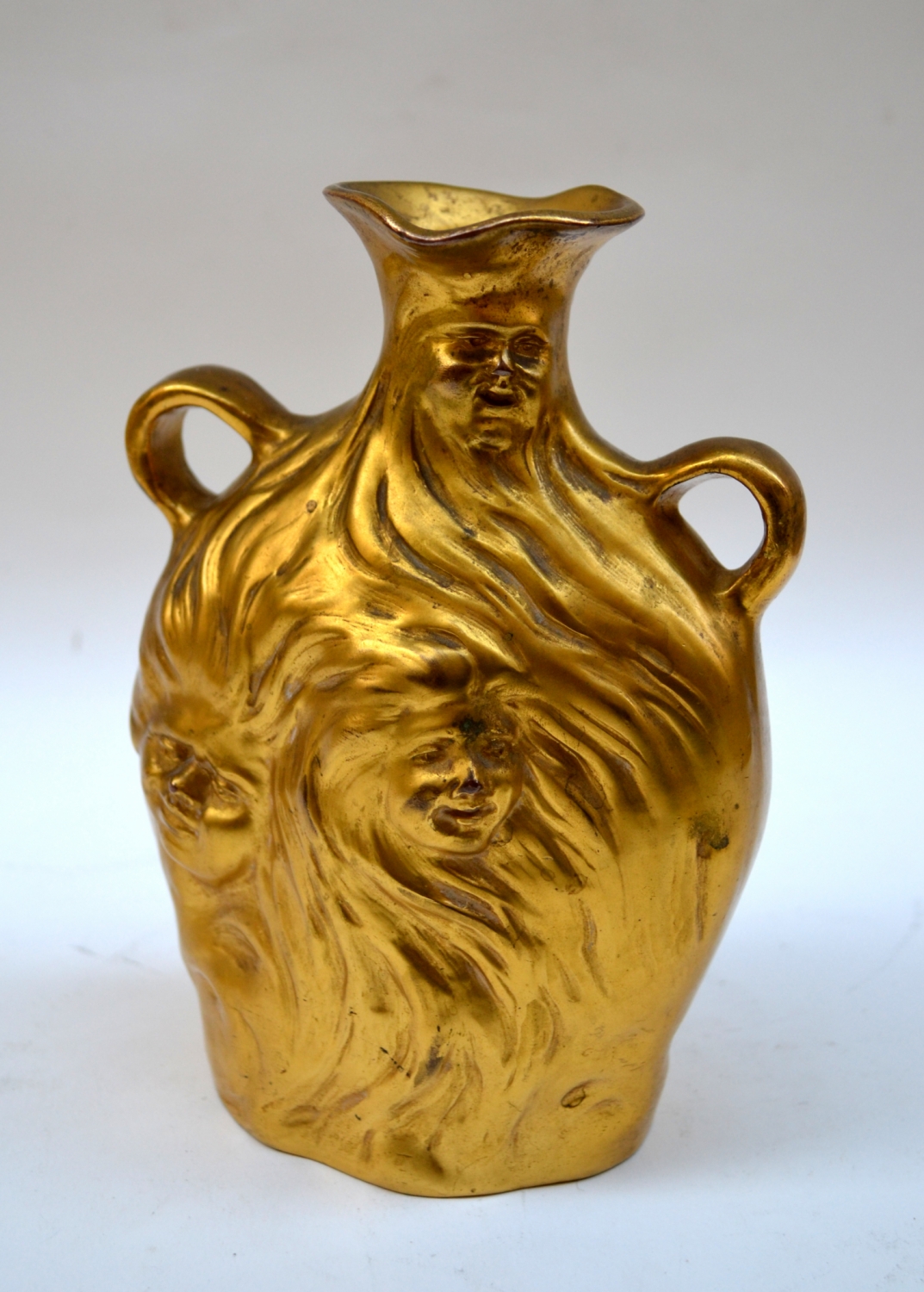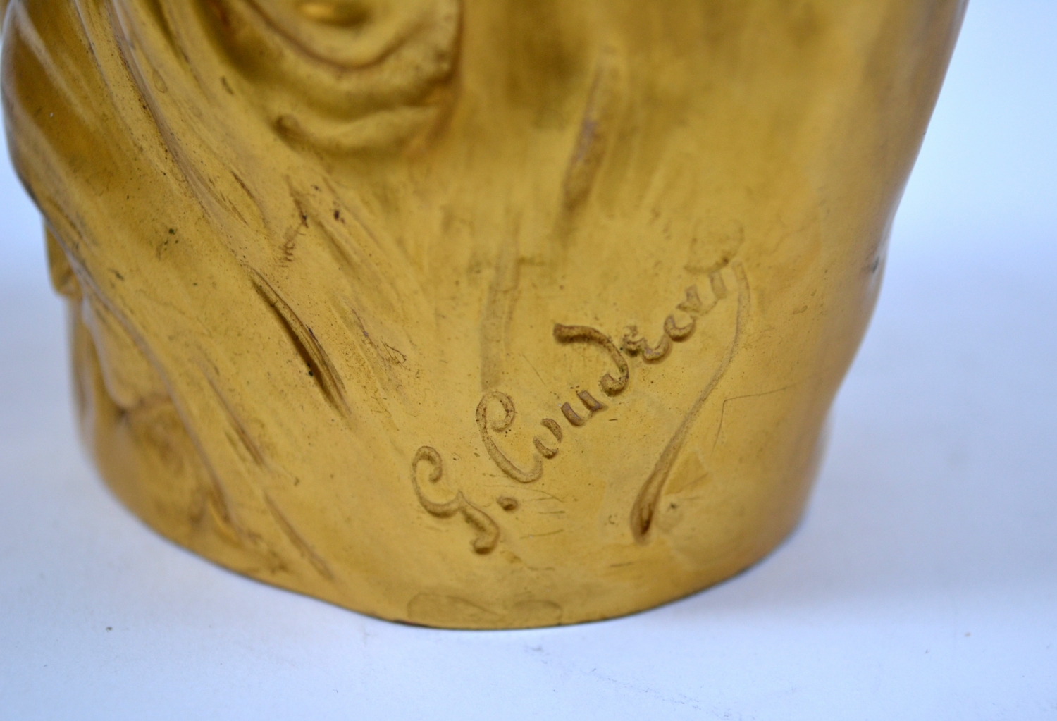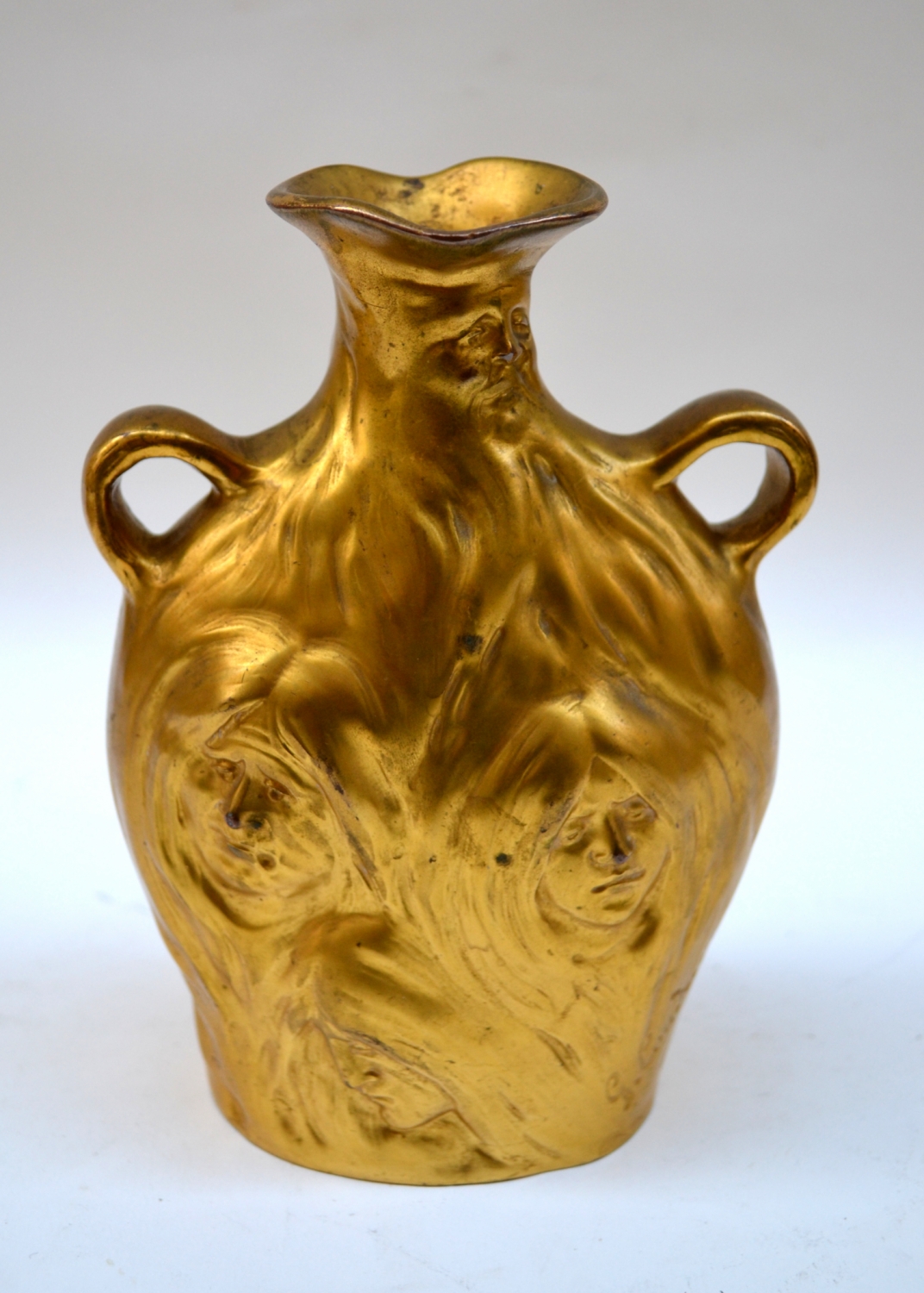 Secesní vázička se zlacenou patinou. Francouzská provenience kolem roku 1900. Signováno G. Coudrey.
