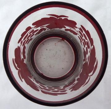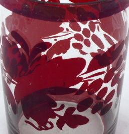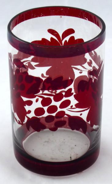 Sklenice s rubínovou lazurou a vinnými listy s hrozny