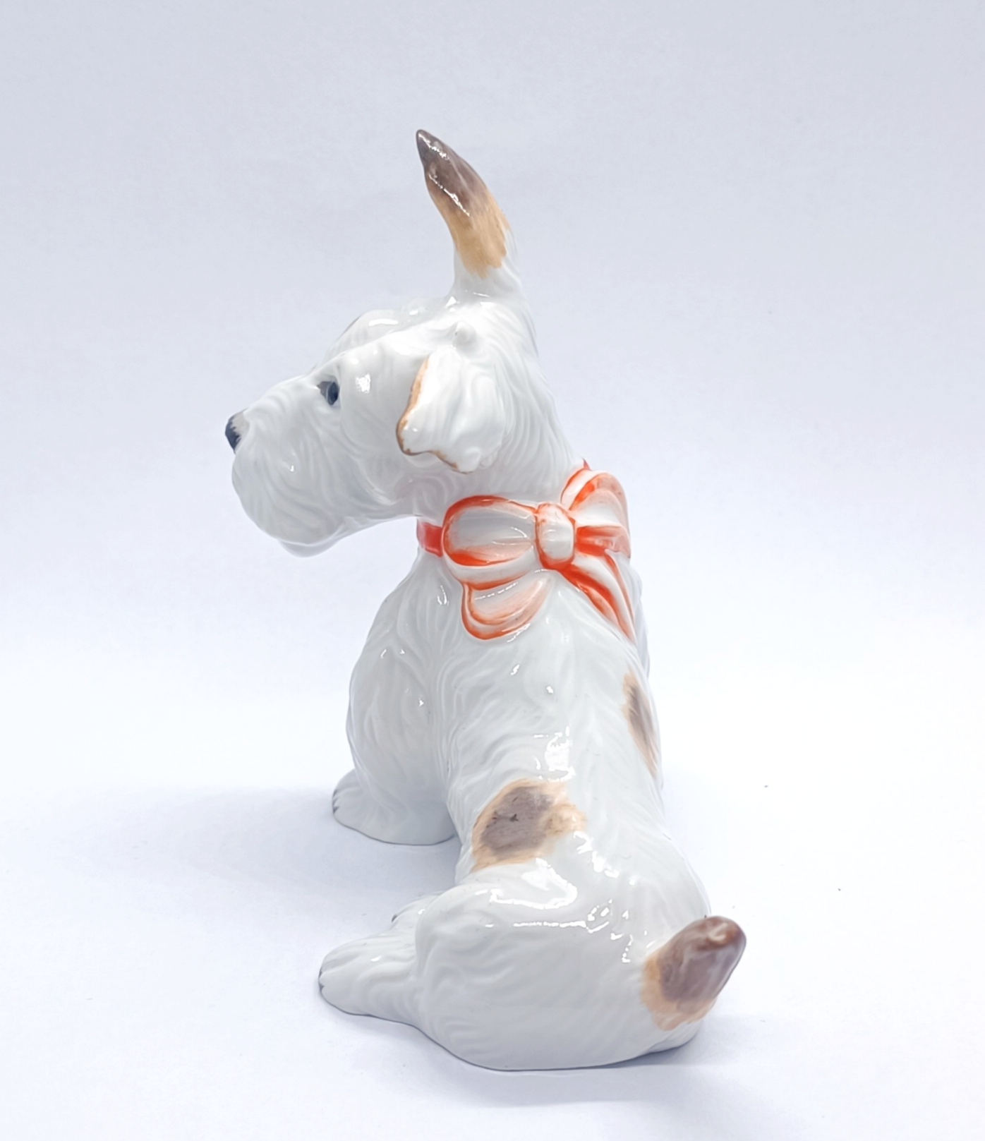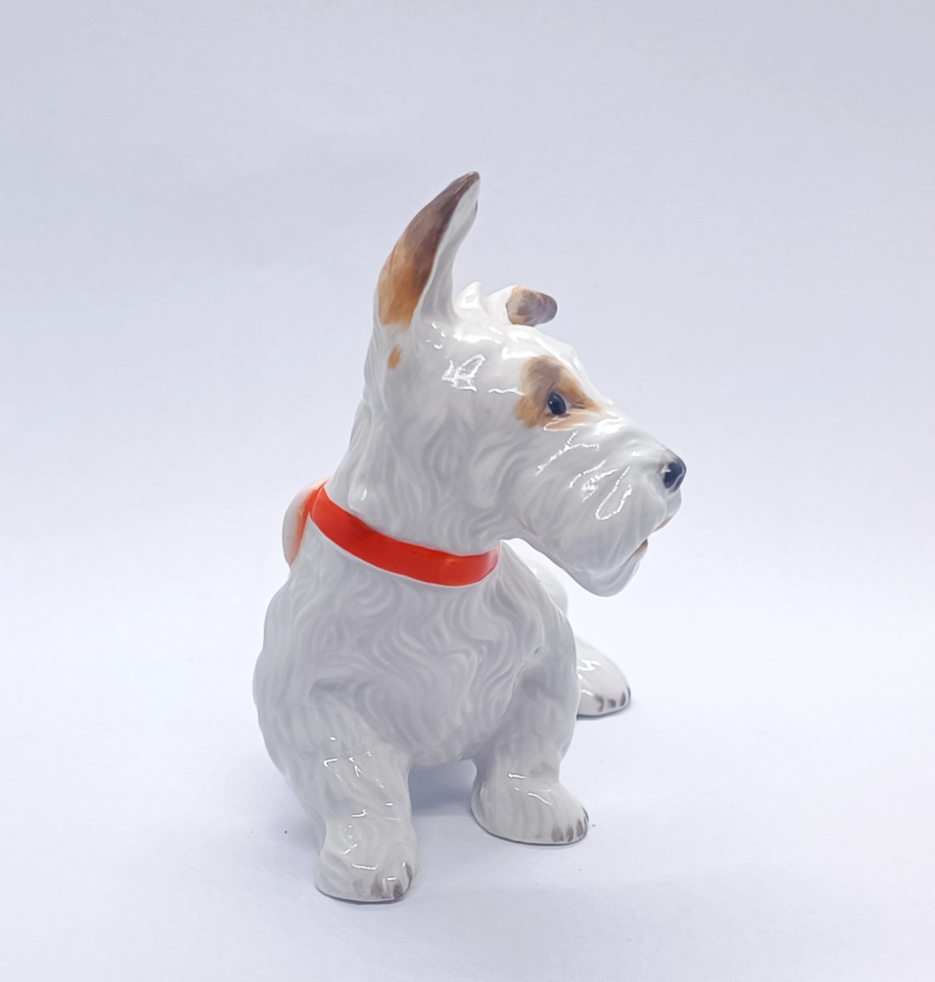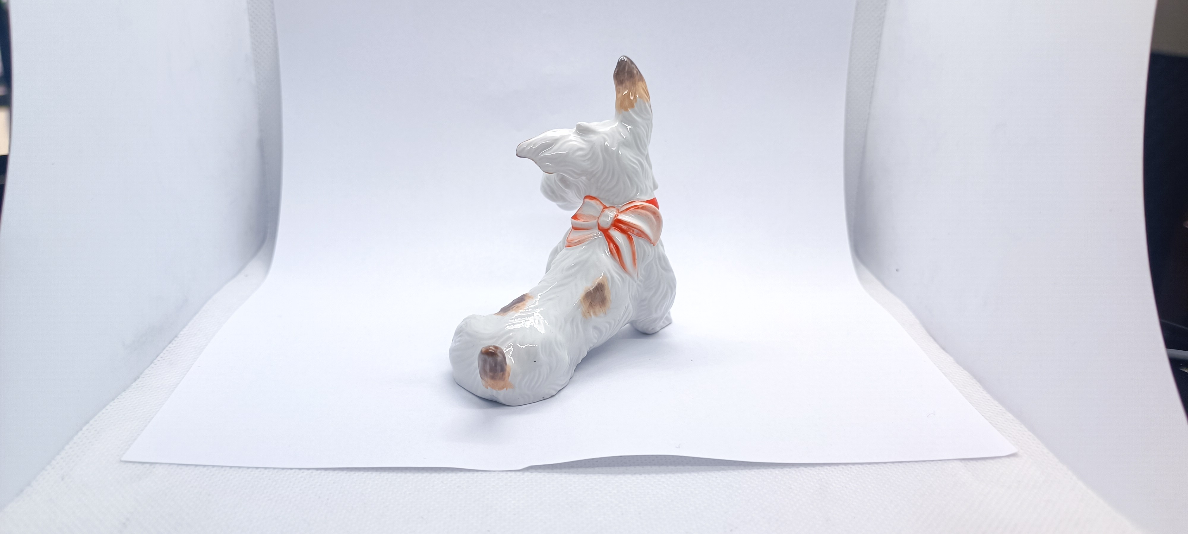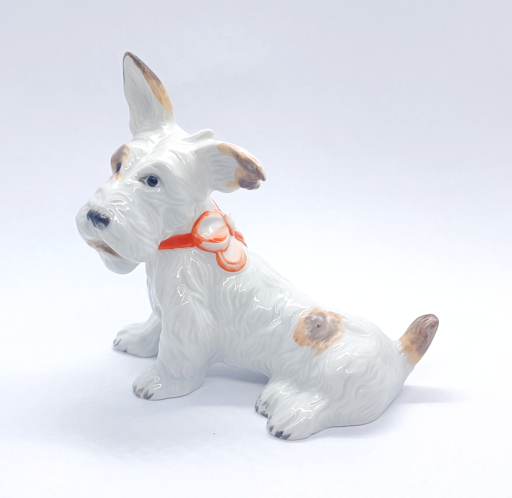 Porcelánová figurka skotského teriéra, značeno Schlaggenwald/Slavkov, výroční značka, rok 1932; výška 8,5 cm, délka 9 cm