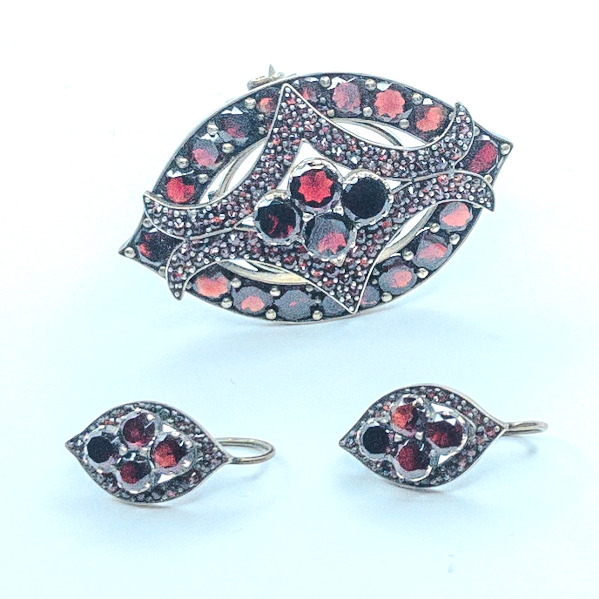 Čechy, 19. století, český granát plochého výbrusu, tombak