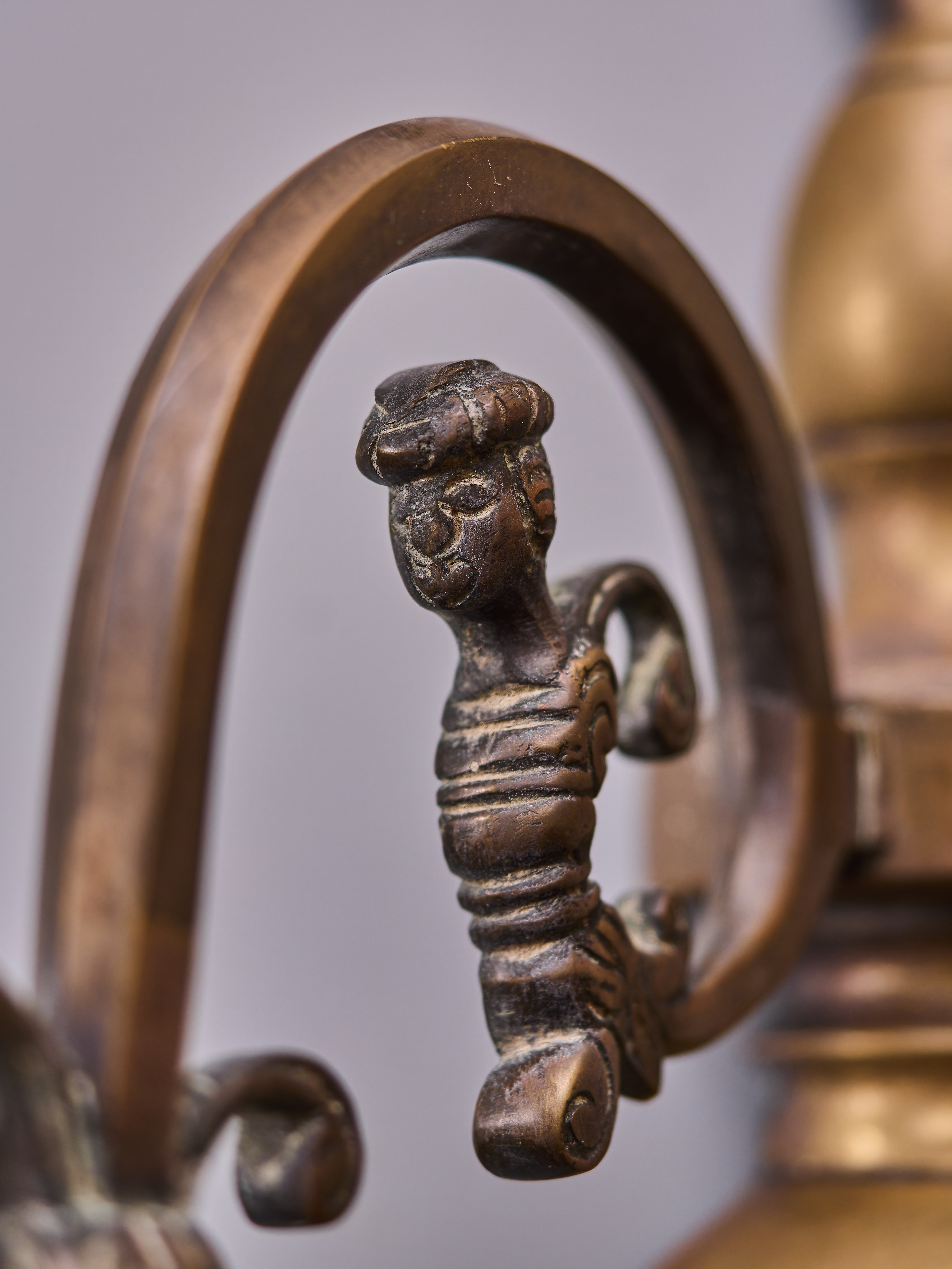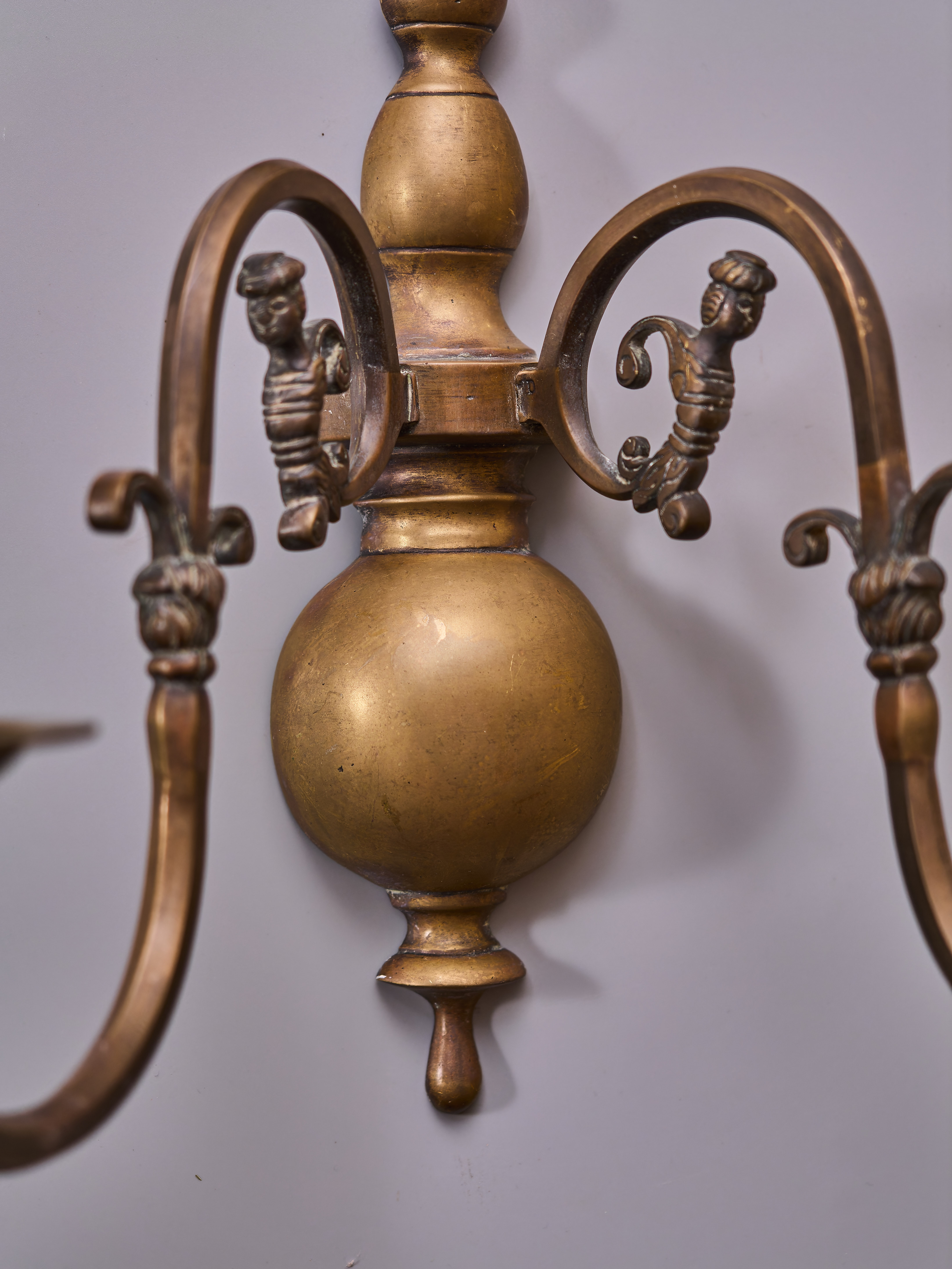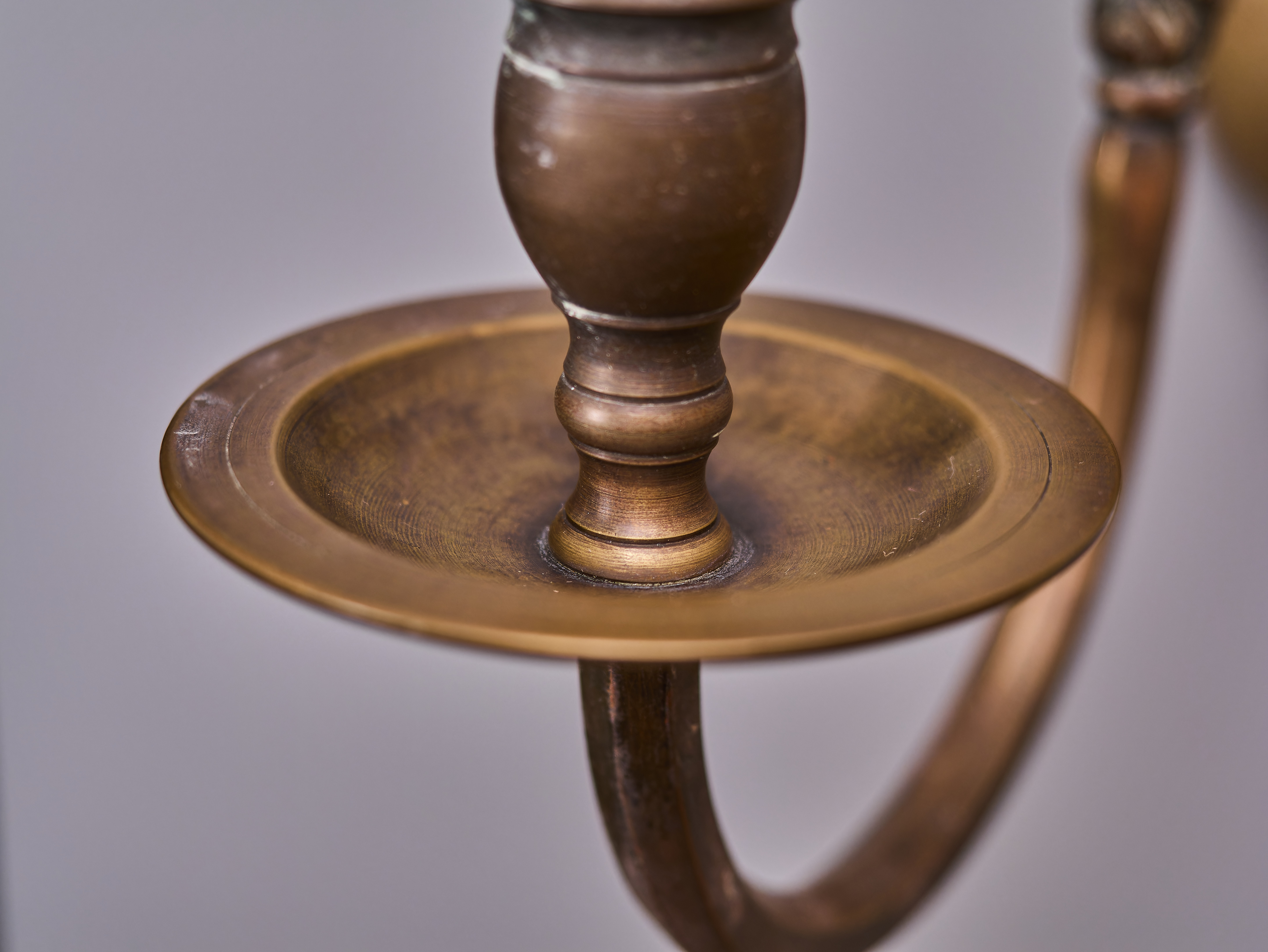Vlámská nástěnná lampa s figurkami a vrchní orlicí. Lampa byla vyrobena koncem 19. století. Nyní je nově elektrifikovaná – plně funkční. Lampa je na dvě svíčkové žárovky s paticí E14 do 40W – vhodné jsou normální, halogenové i led žárovky.