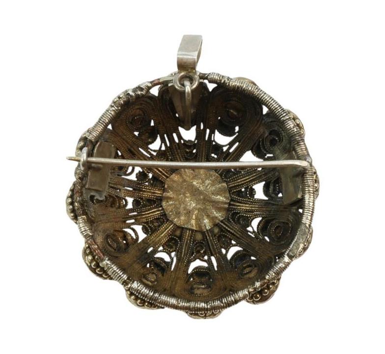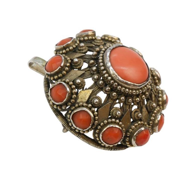 Starožitná stříbrná brož/závěs s mořským korálem, stříbro o ryzosti 925/1000 o celkové hmotnosti 36,05 g,