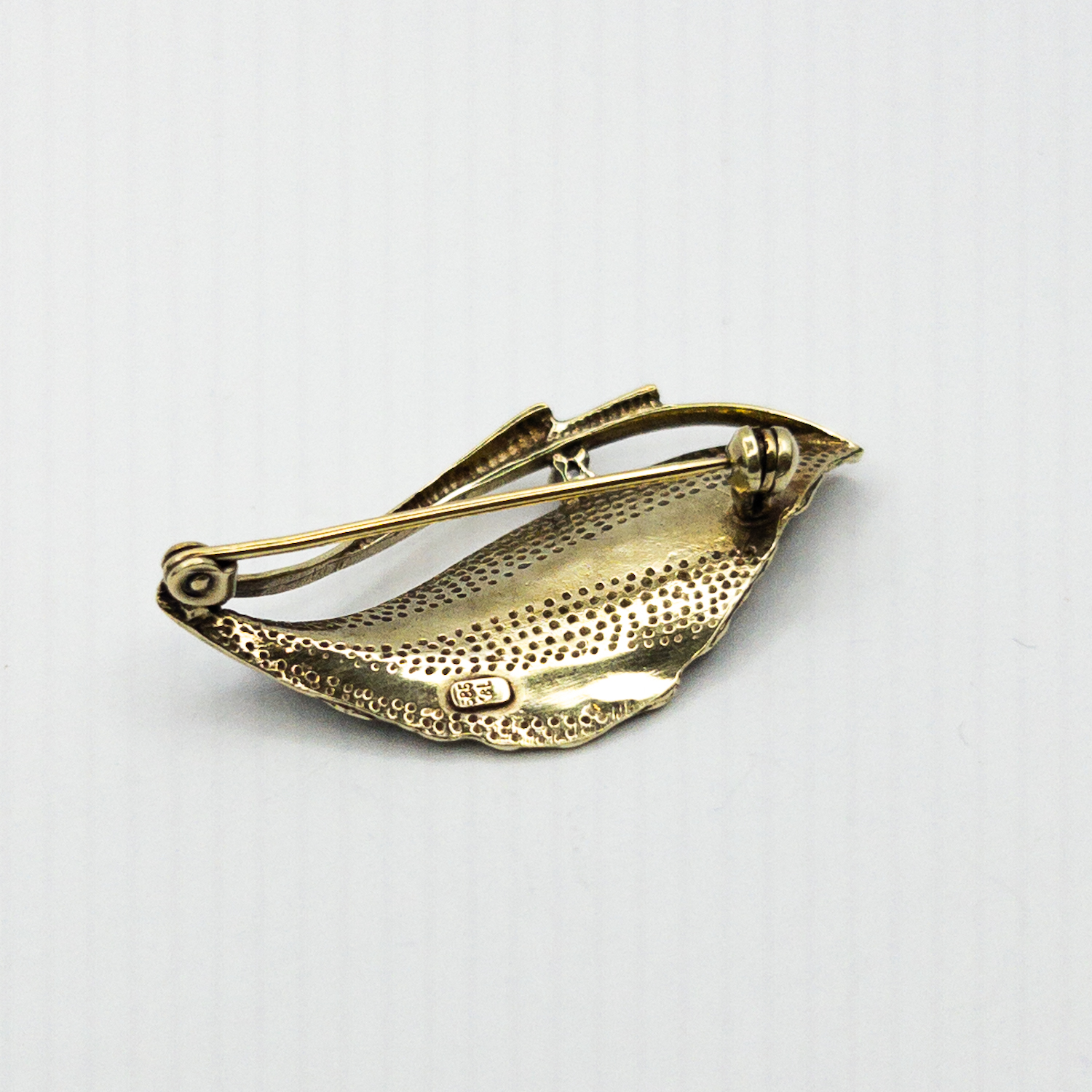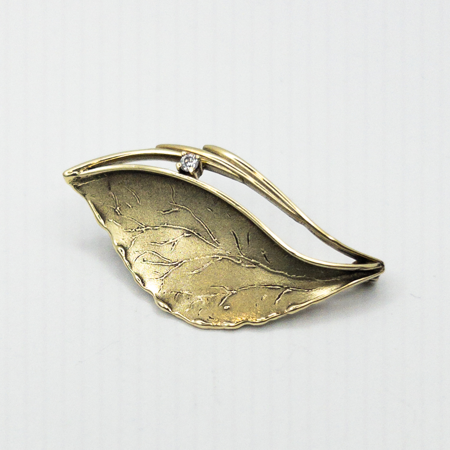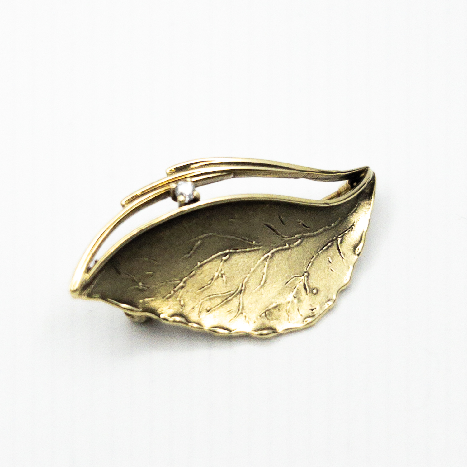 Starožitná zlatá brož ve tvaru listu s drobným briliantem ,