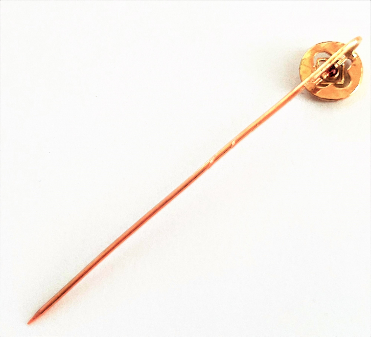 Starožitná zlatá jehlice do kravaty ze 14 karátového růžového zlata AU585/000 váha brutto 1,05 gramů Velmi hezký stav. Délka jehlice 6,5 cm Puncováno historickým puncem Lyra