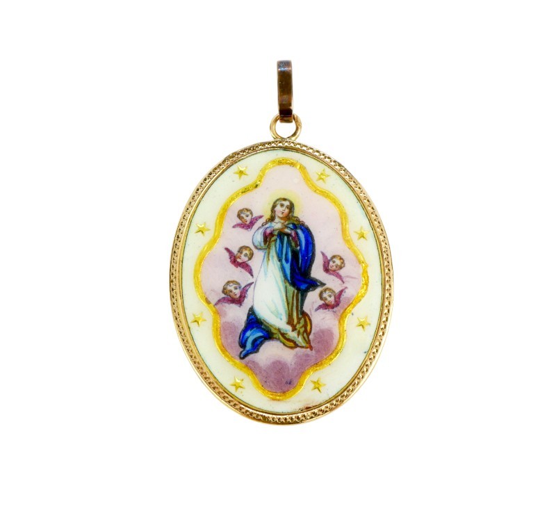 Starožitný zlatý přívěs – madonka,