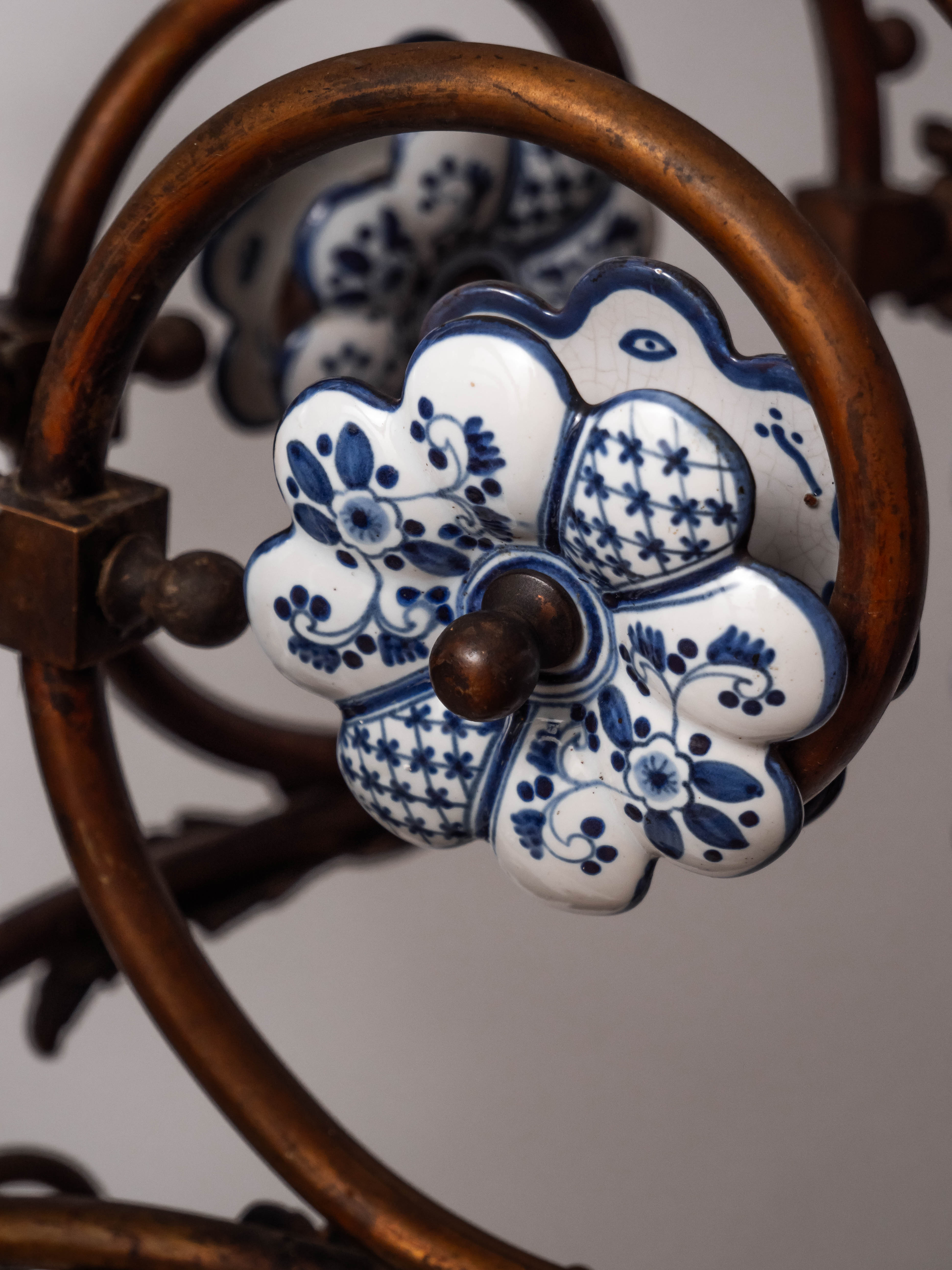 Celkově je tento delftský lustr z 19. století výjimečným kusem, který kombinuje historickou autenticitu s moderními prvky osvětlení, čímž poskytuje nejen estetickou hodnotu, ale i funkčnost pro současné využití.