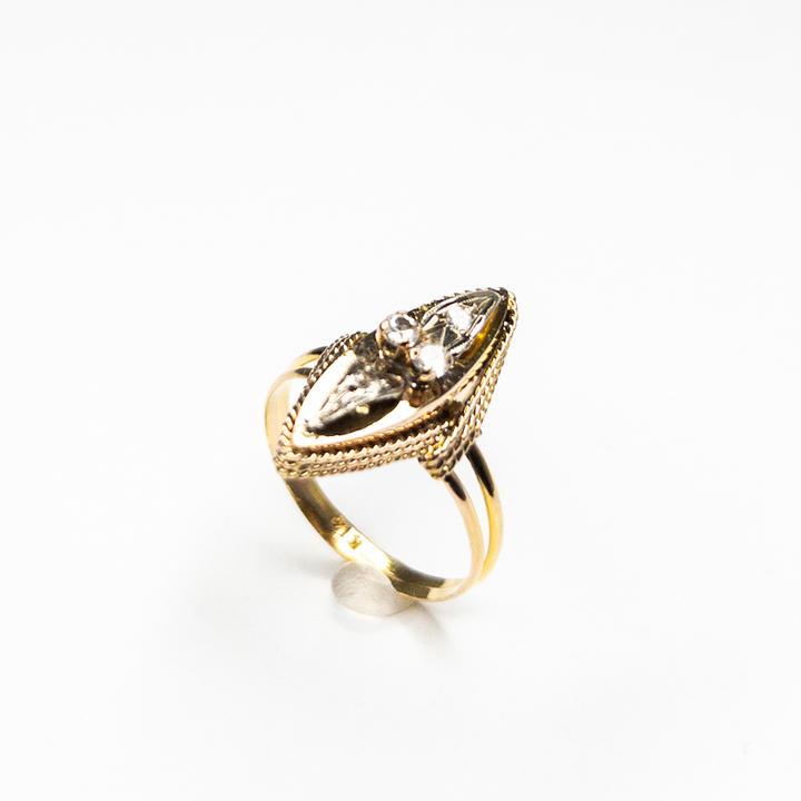 Starožitný zlatý prsten s leukosafíry, zlato o ryzosti 550/1000 o celkové hmotnosti 2,40 g,