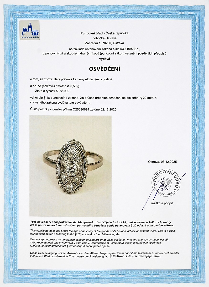 – osvědčení Puncovního úřadu České republiky