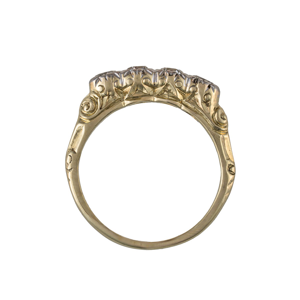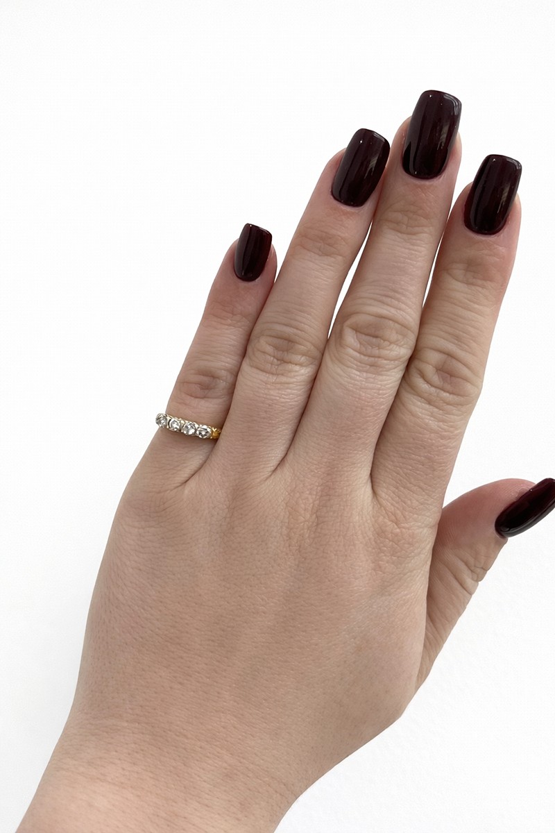 – 4 ks přírodních diamantů, celkem 0,44 ct, kulatý briliantový Old Europe, výjimečně bílý (D-E-F), čistota SI1-SI2, průměr 3,0-3,1 mm