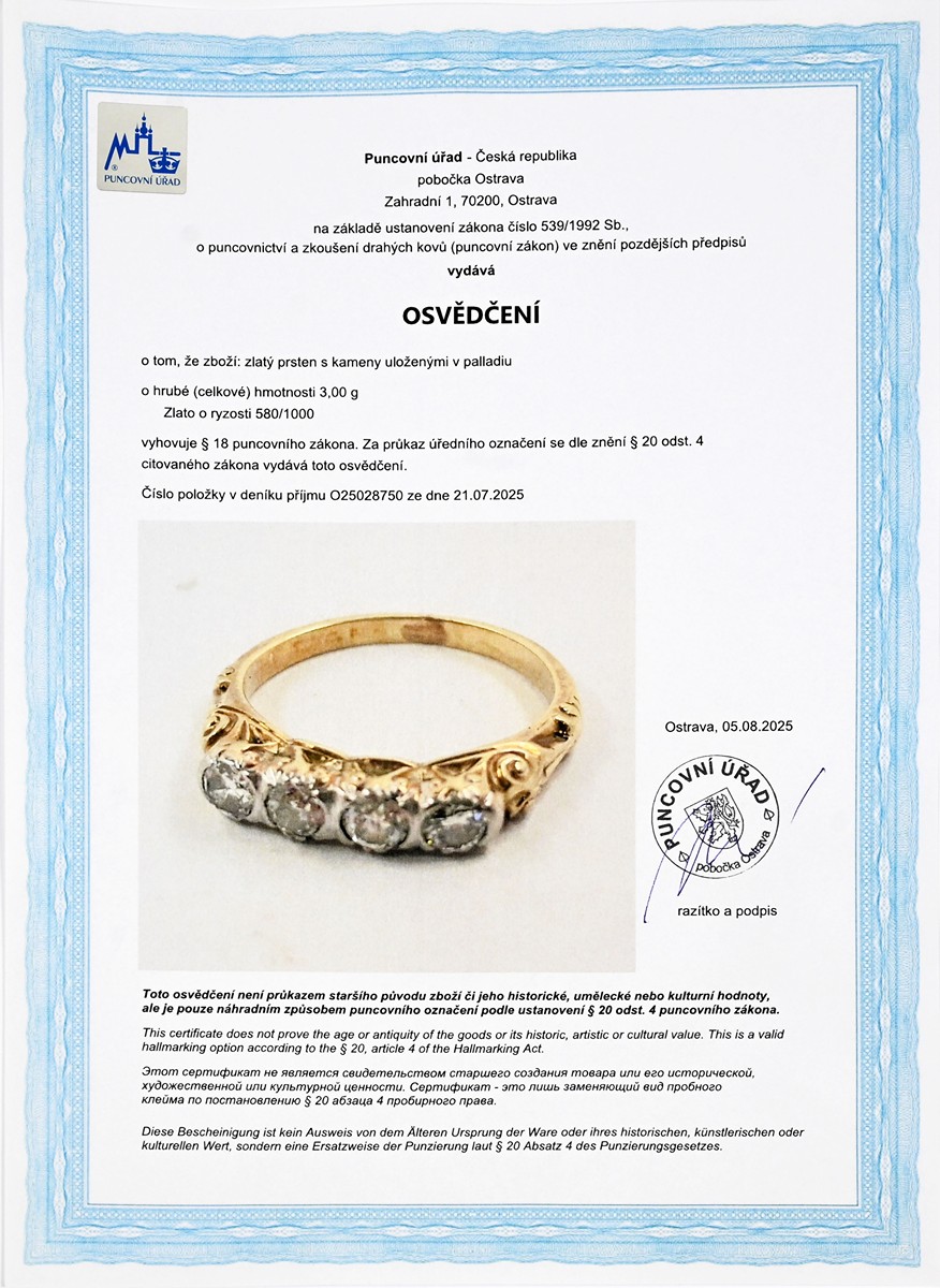 – osvědčení Puncovního úřadu České republiky