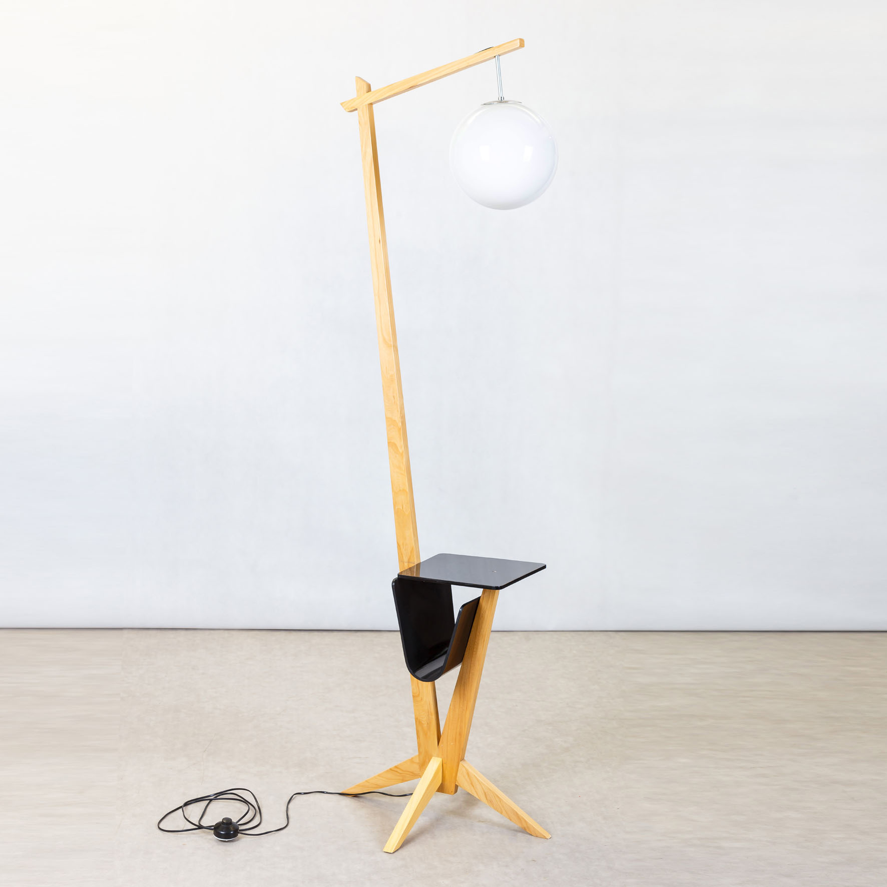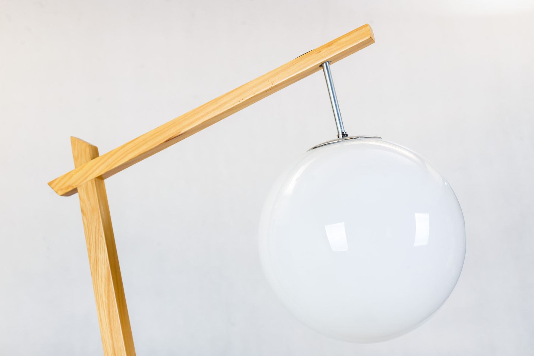 STOJACÍ LAMPA. Původ-Československo. Design-Krásná jizba Materiál-dřevěná kostra, koule sklo. Rozměry-v190. Stav-redesignováno..renovace. Poznámka-dopravu zajistíme po předchozí dohodě.