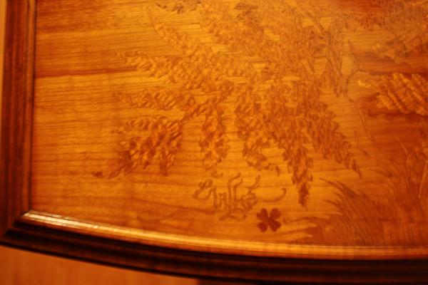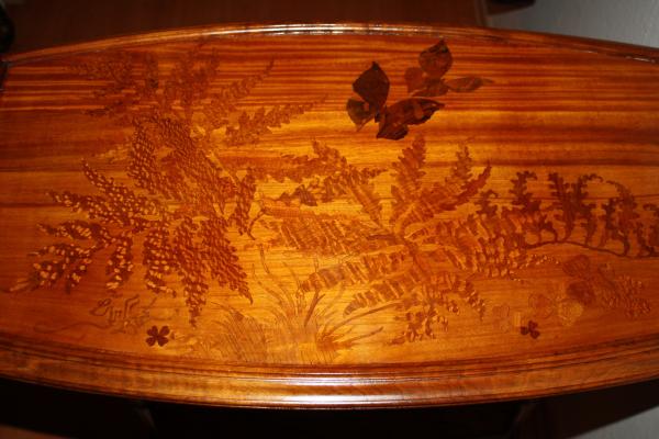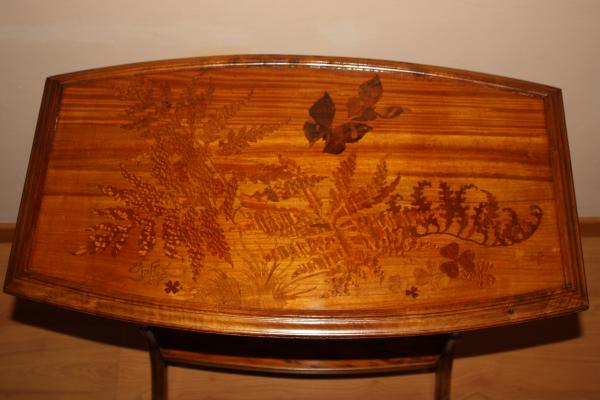 Dřevěný stoleček – intarzováno, signováno Gallé, výborný