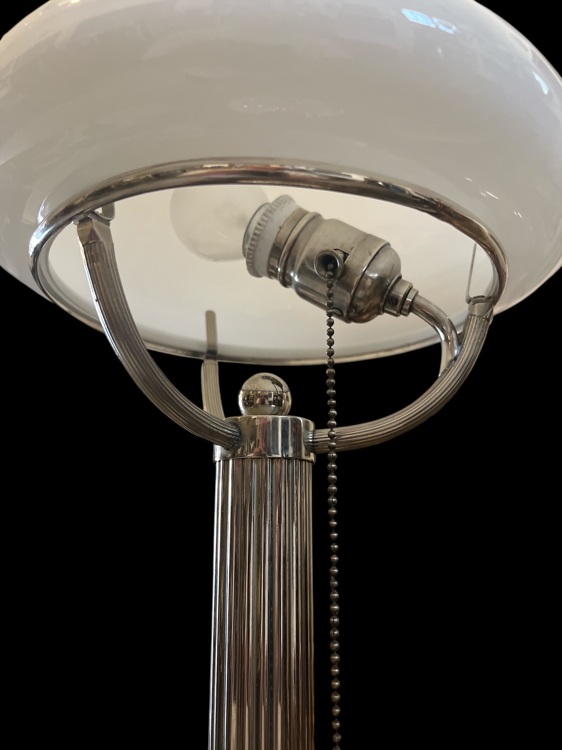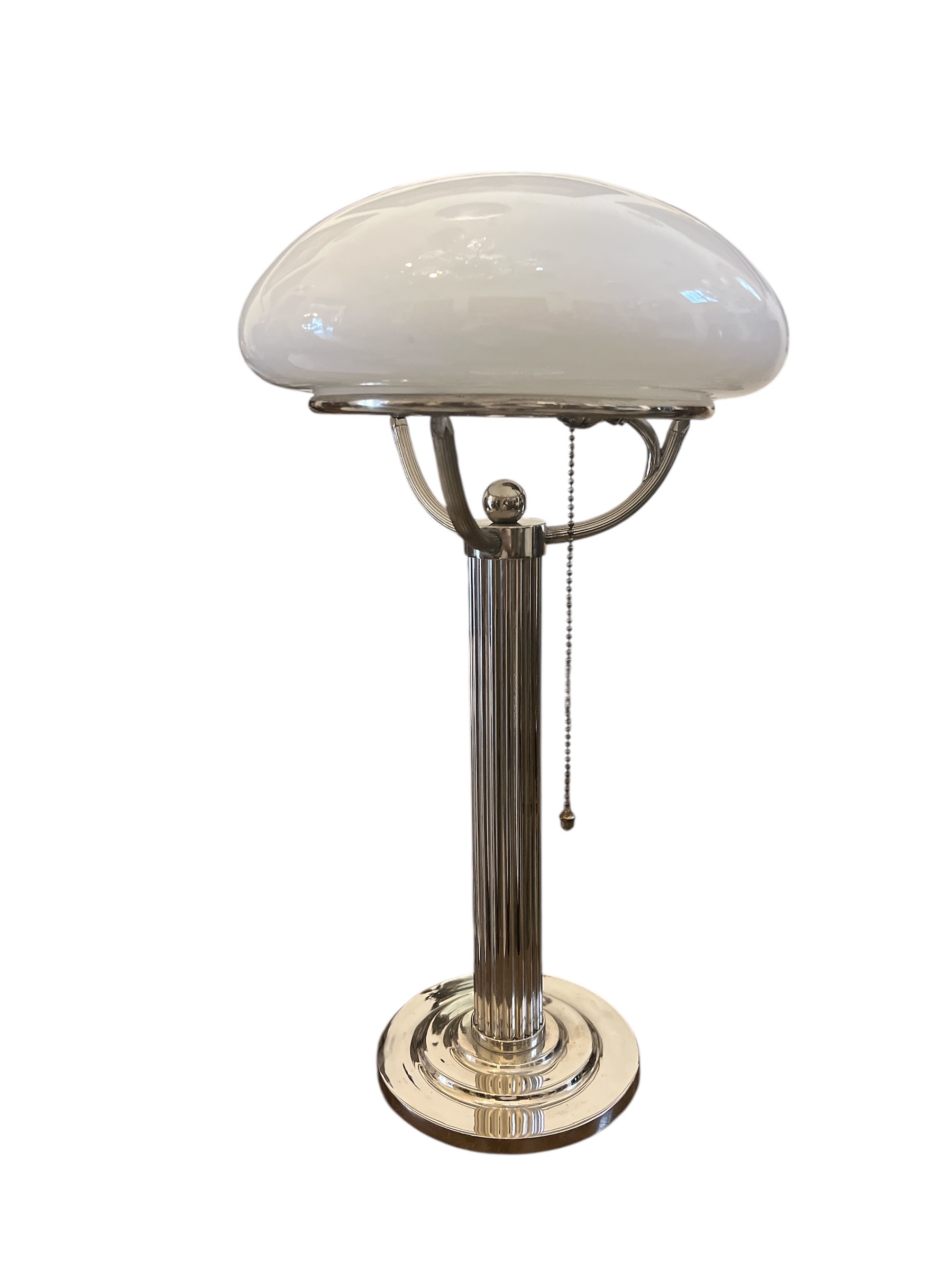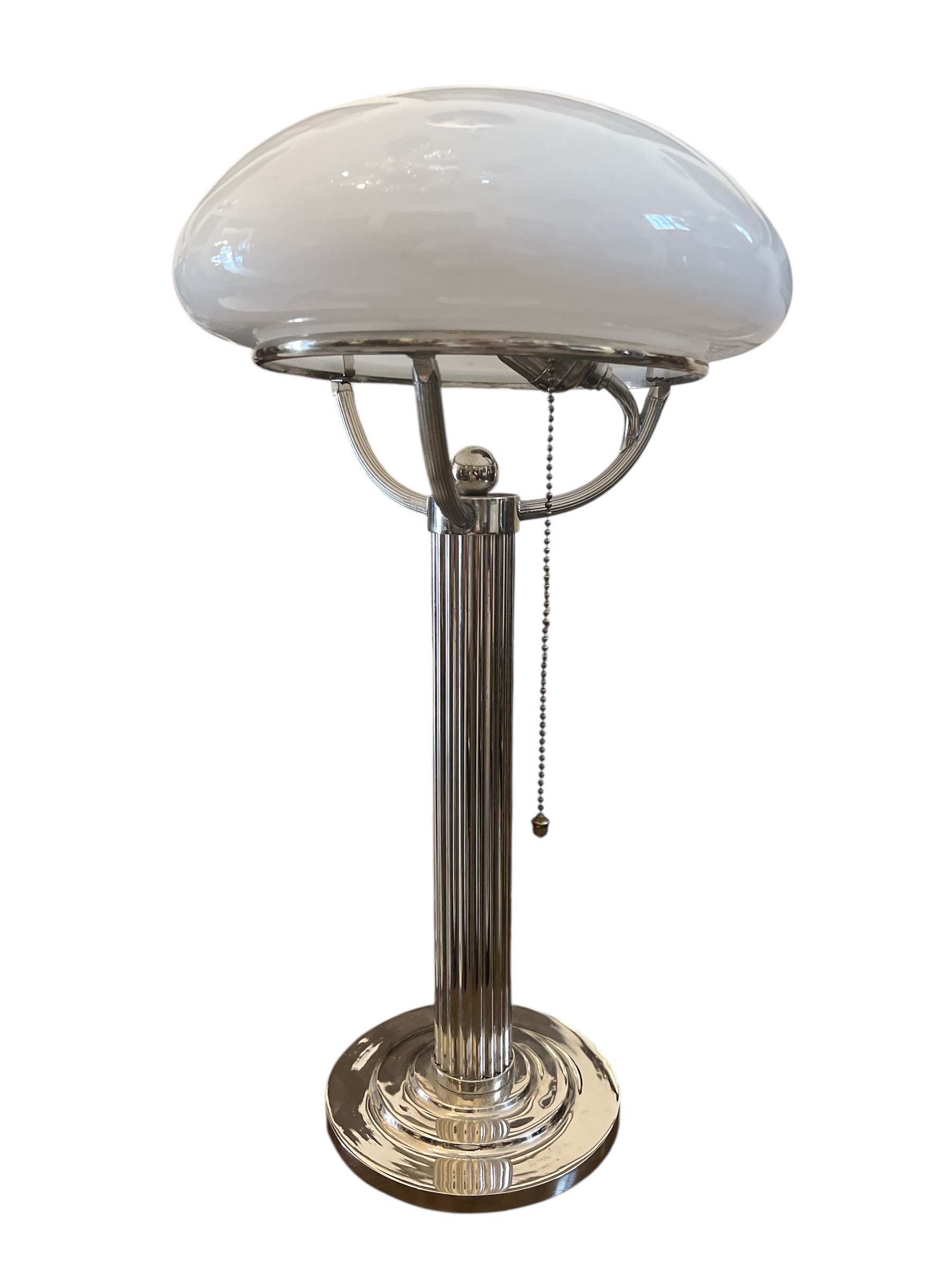Stolní lampa LST-1, opálové sklo, niklovaná mosaz, navrženo pro Villa Steiner Wien od Adolfa Loose v roce 1910.