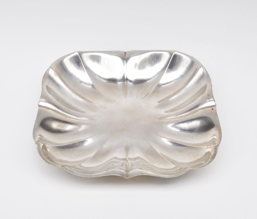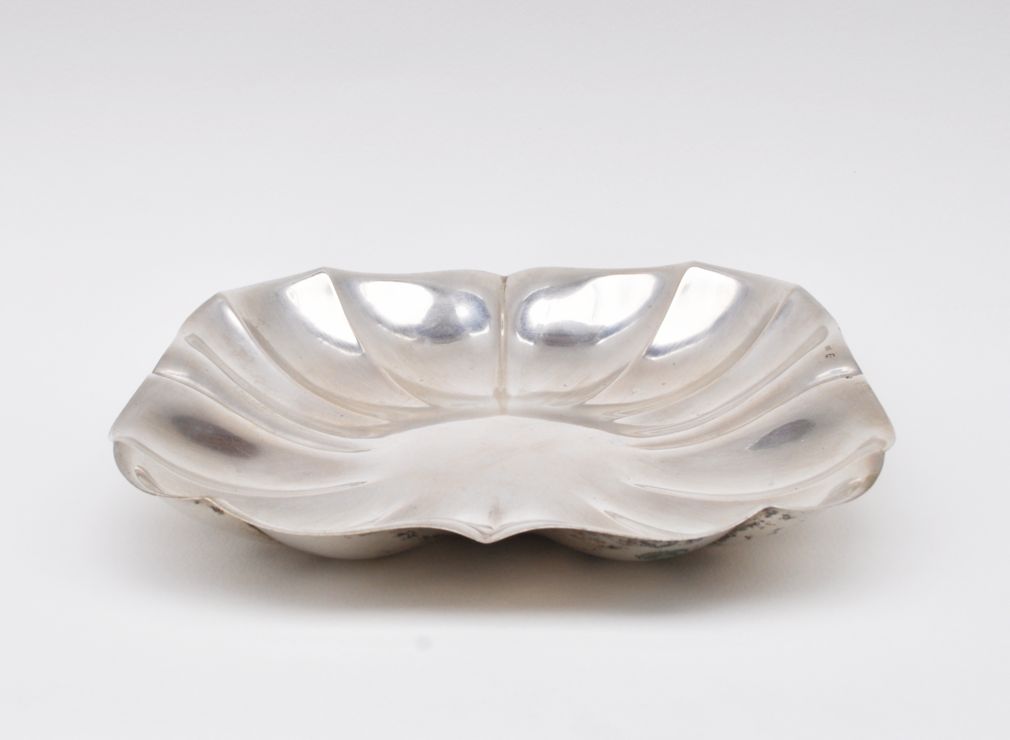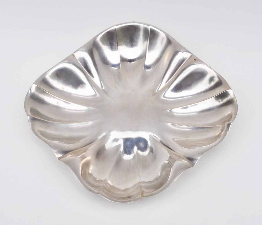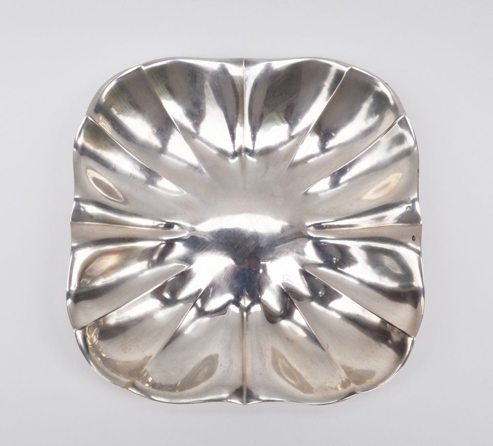 Zajímavá stříbrná Art Deco čtvercová miska, Ag 800/1000, celková hmotnst 167,40 g, velikost 17,3 x 17,3 cm.