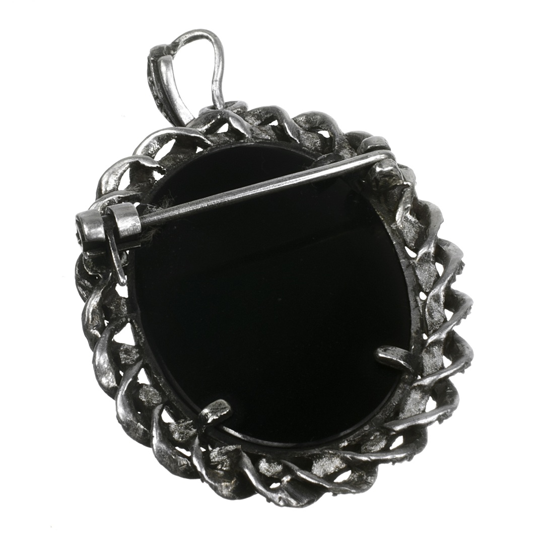 Stříbrná brož/ přívěs s onyxem a markazity.