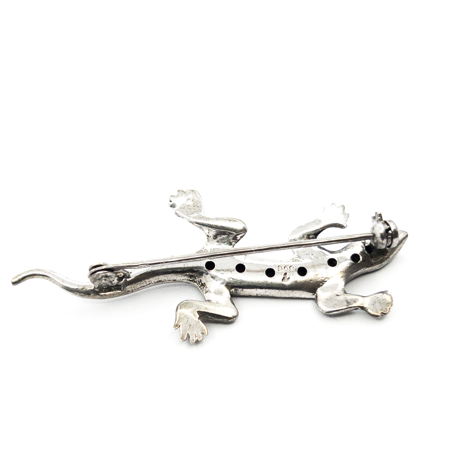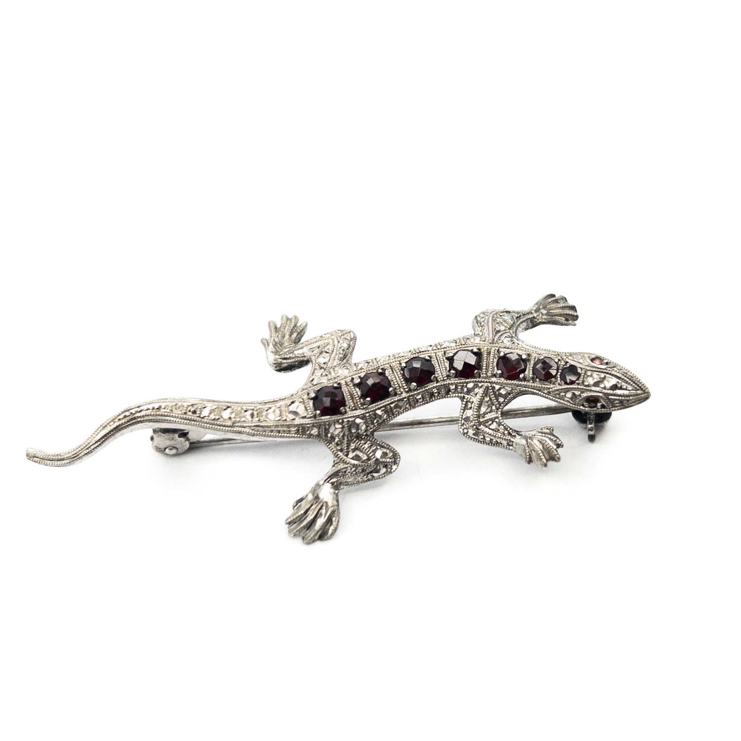 Stříbrná brož s českými granáty, ještěrka,