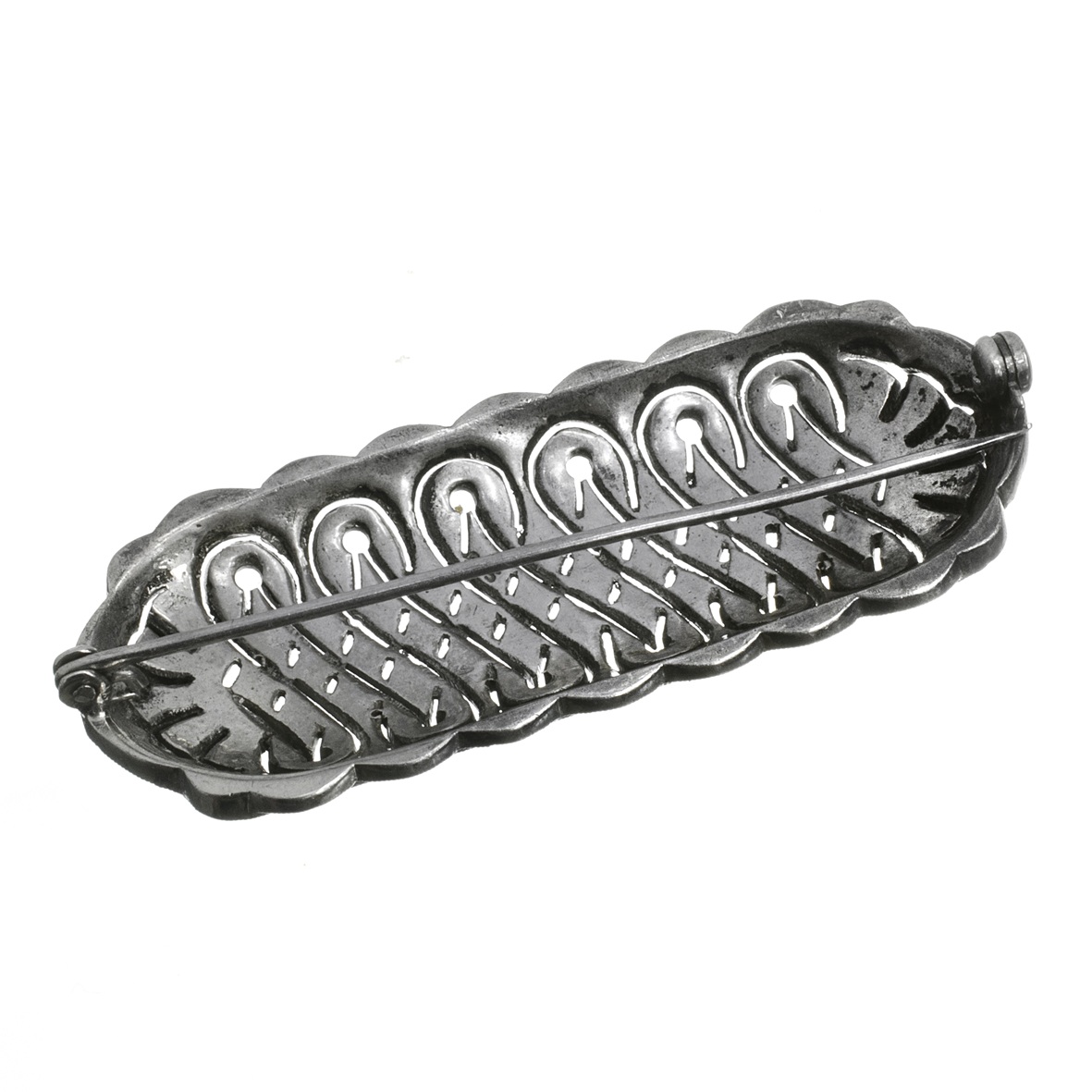 Stříbrná brož bohatě zdobená gravírováním a markazity.