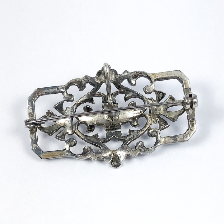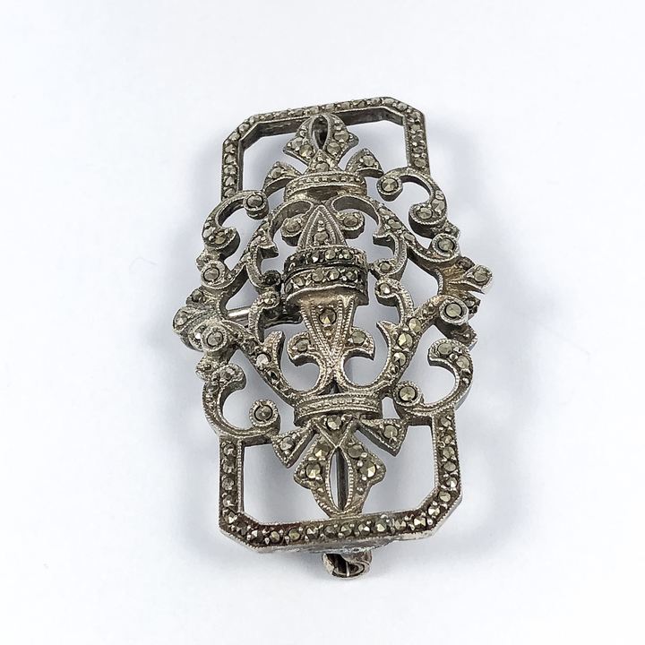Stříbrná brož s markazity , 30. léta 20. století, období Art Deco, stříbro o ryzosti 925/1000 o celkové hmotnosti 10,15 g,