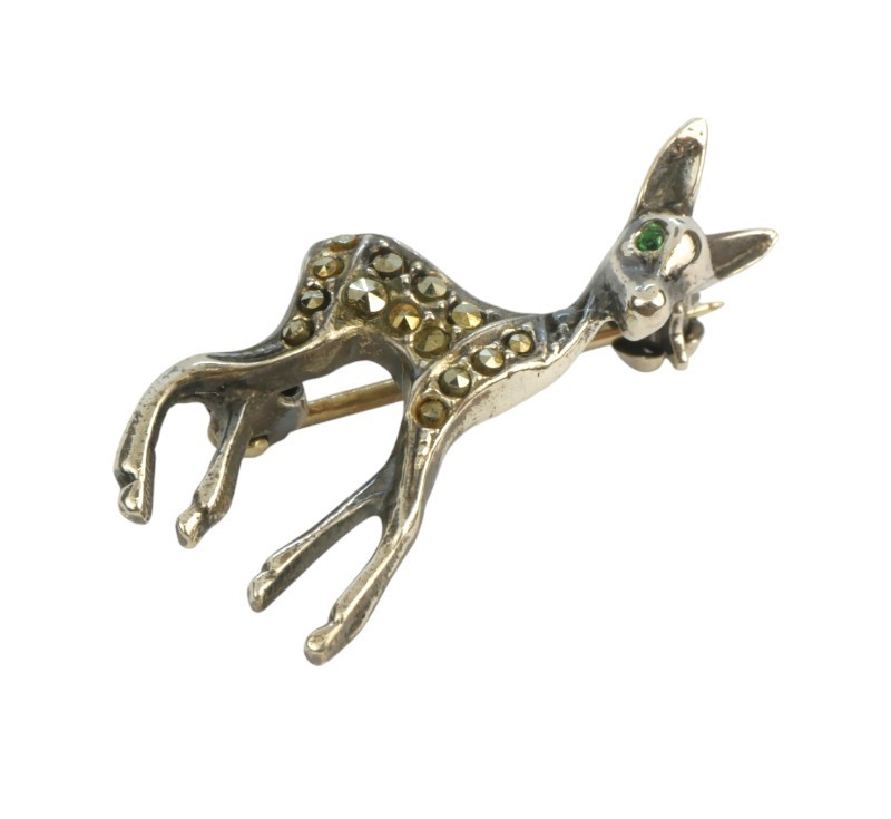 Stříbrná brož s markazity, jelínek