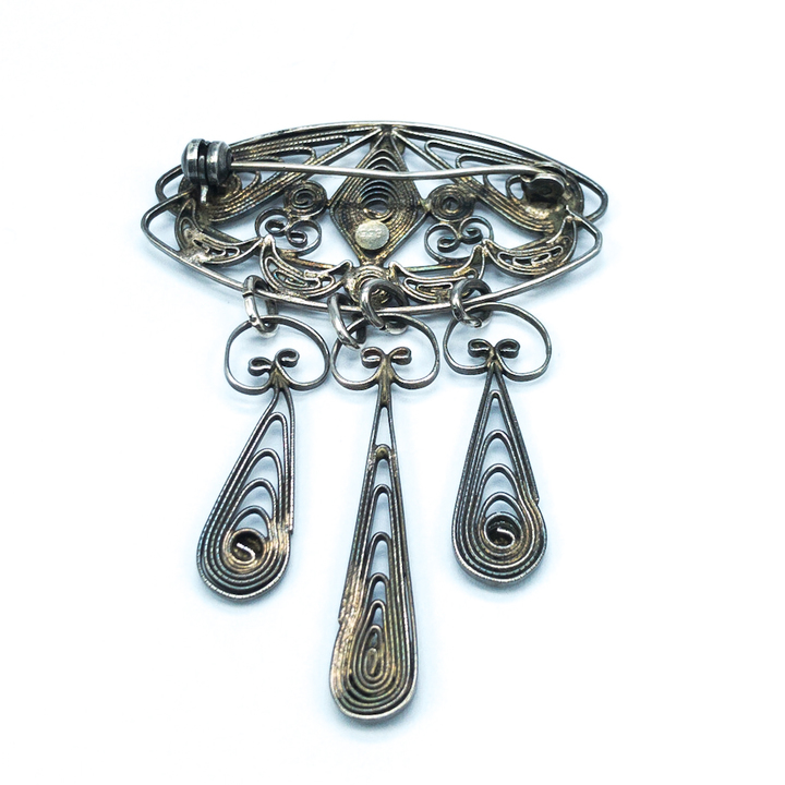 Stříbrná brož s ověsky, krásná stříbrná brož s filigránovým zdobením,