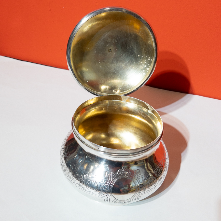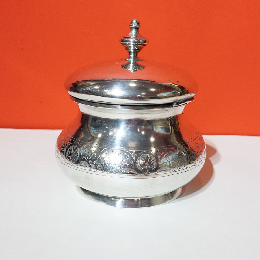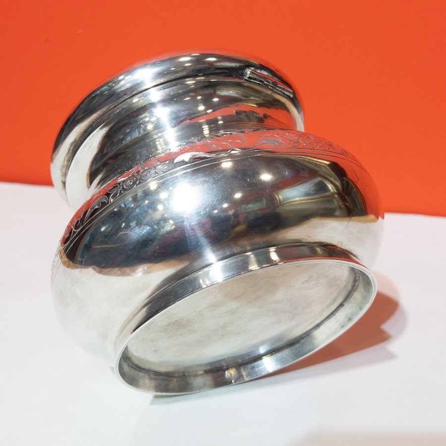 Velká stříbrná dóza s víčkem,