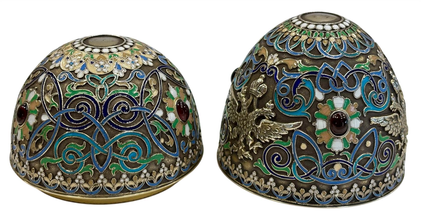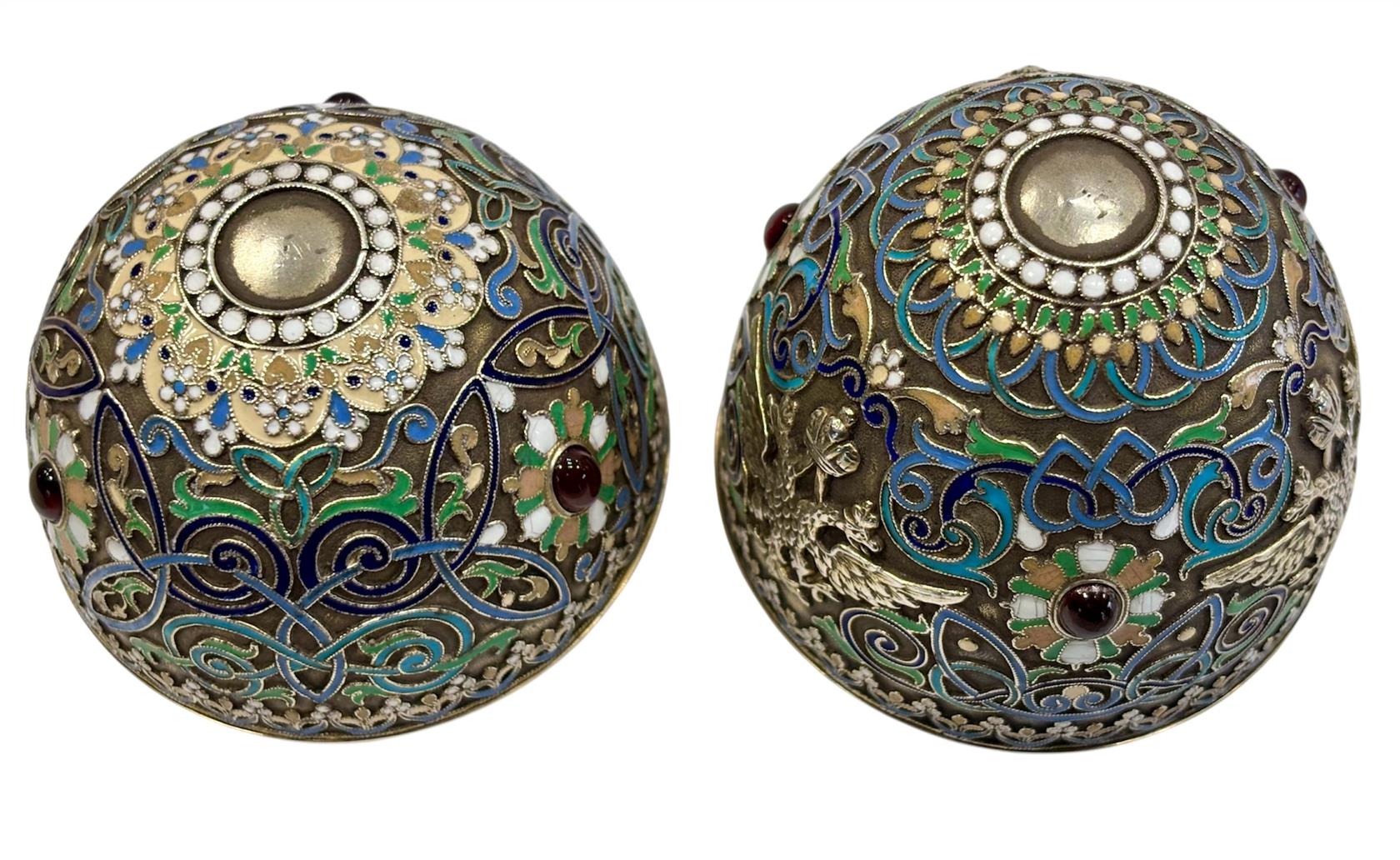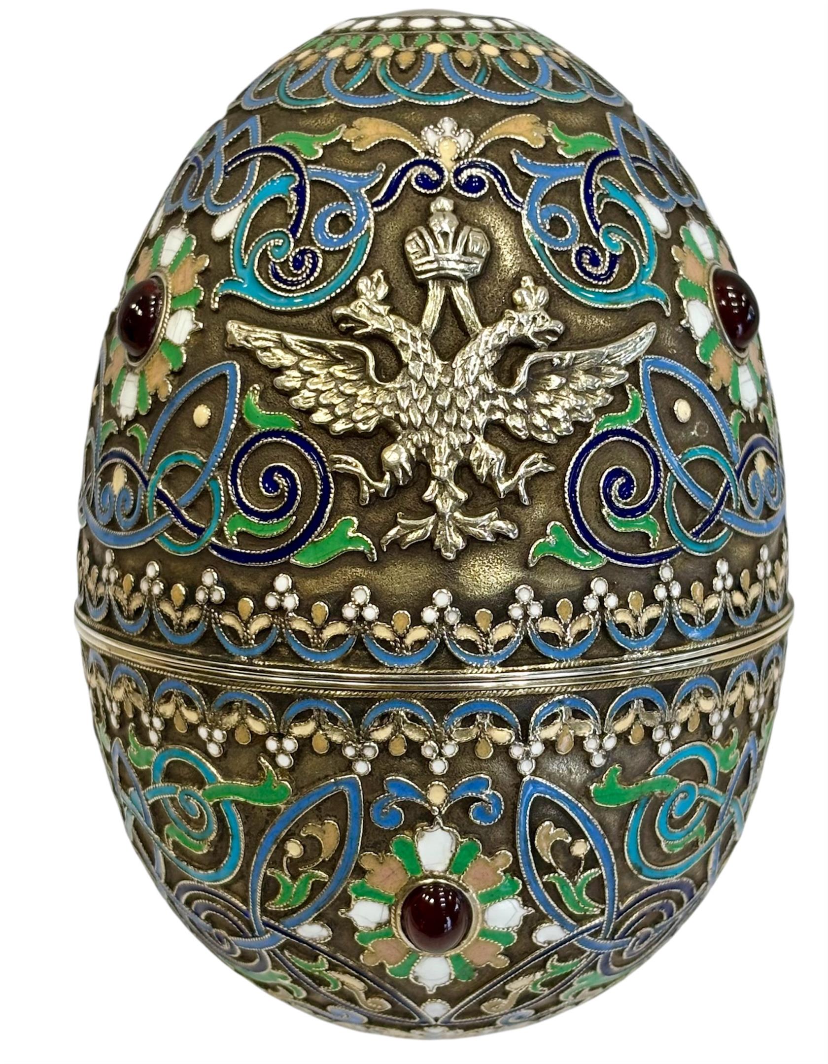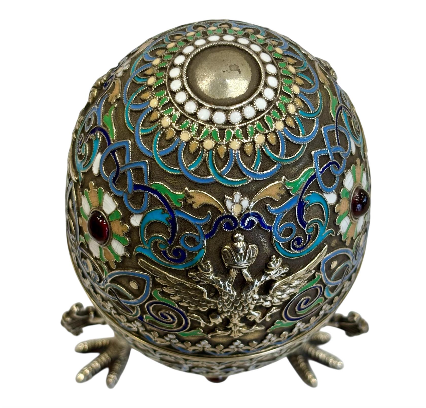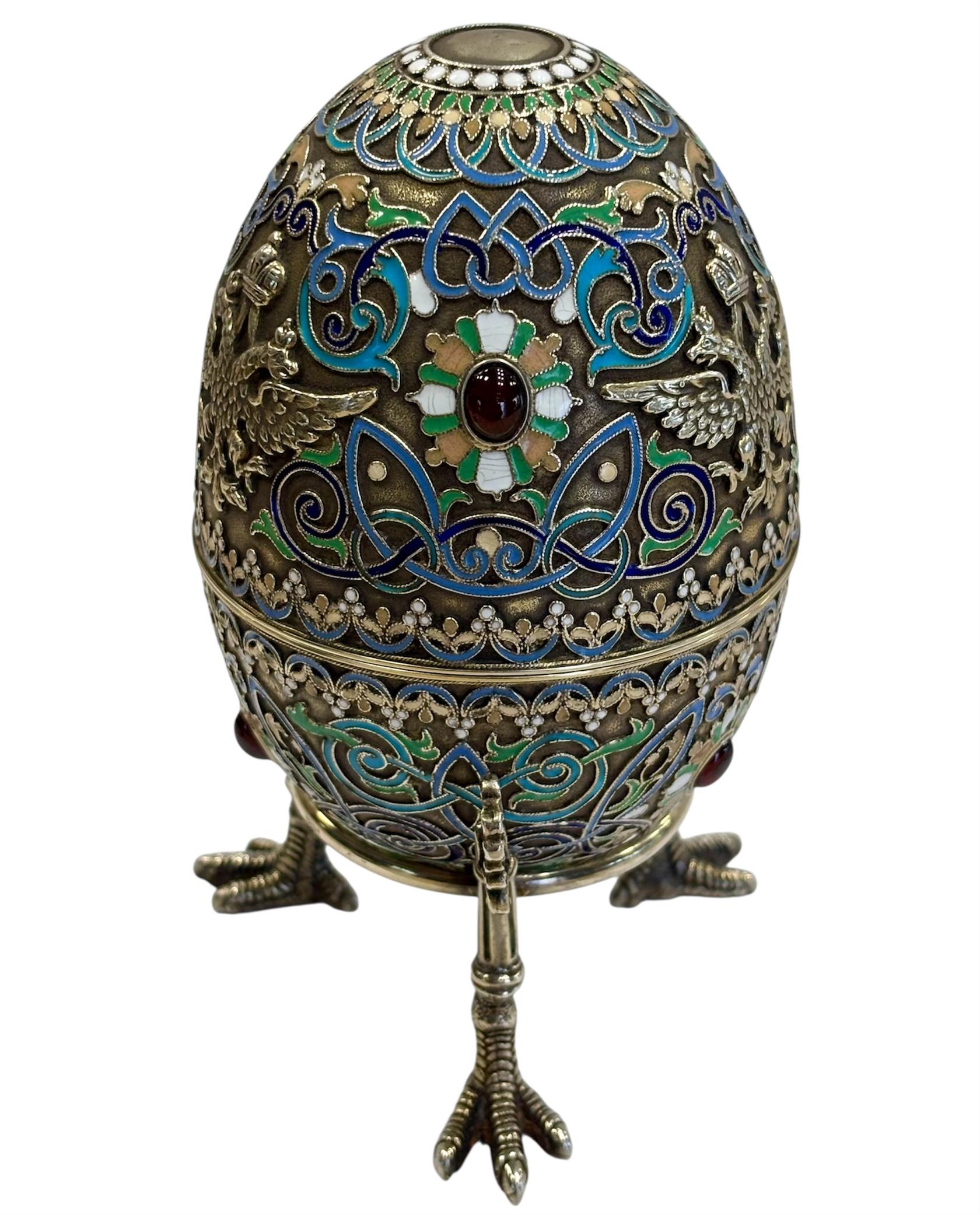Puncováno ruskými puncy. Ve stylu Fabergého vejce. Váha 286,35 g. Značeno zlatnickým puncem. Luxusní zlatnická práce.