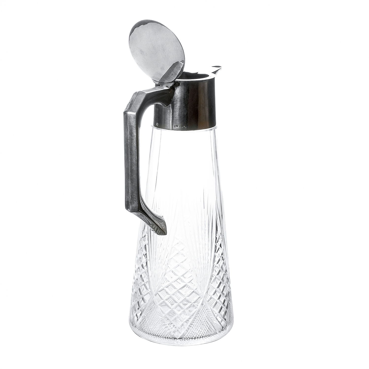 Karafa na víno byla vyrobena kolem roku 1910, jedná se kombinaci leštěného stříbra a broušeného čírého skla.