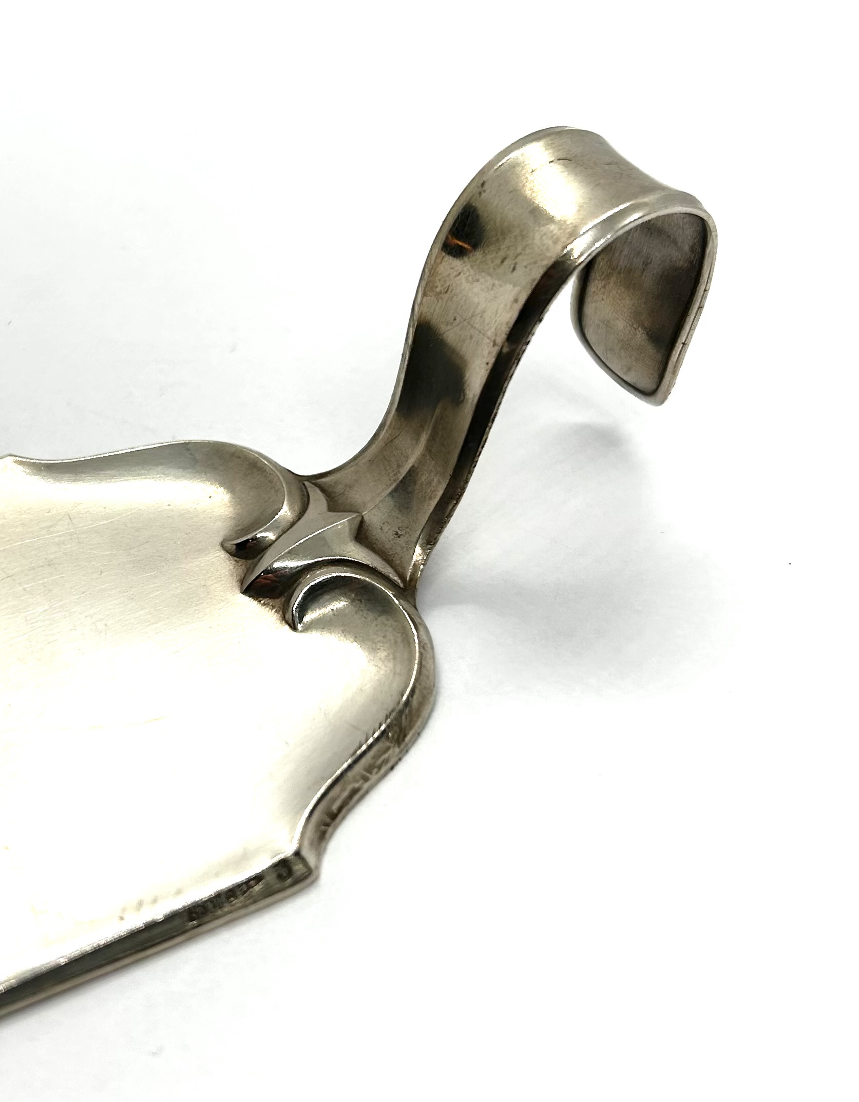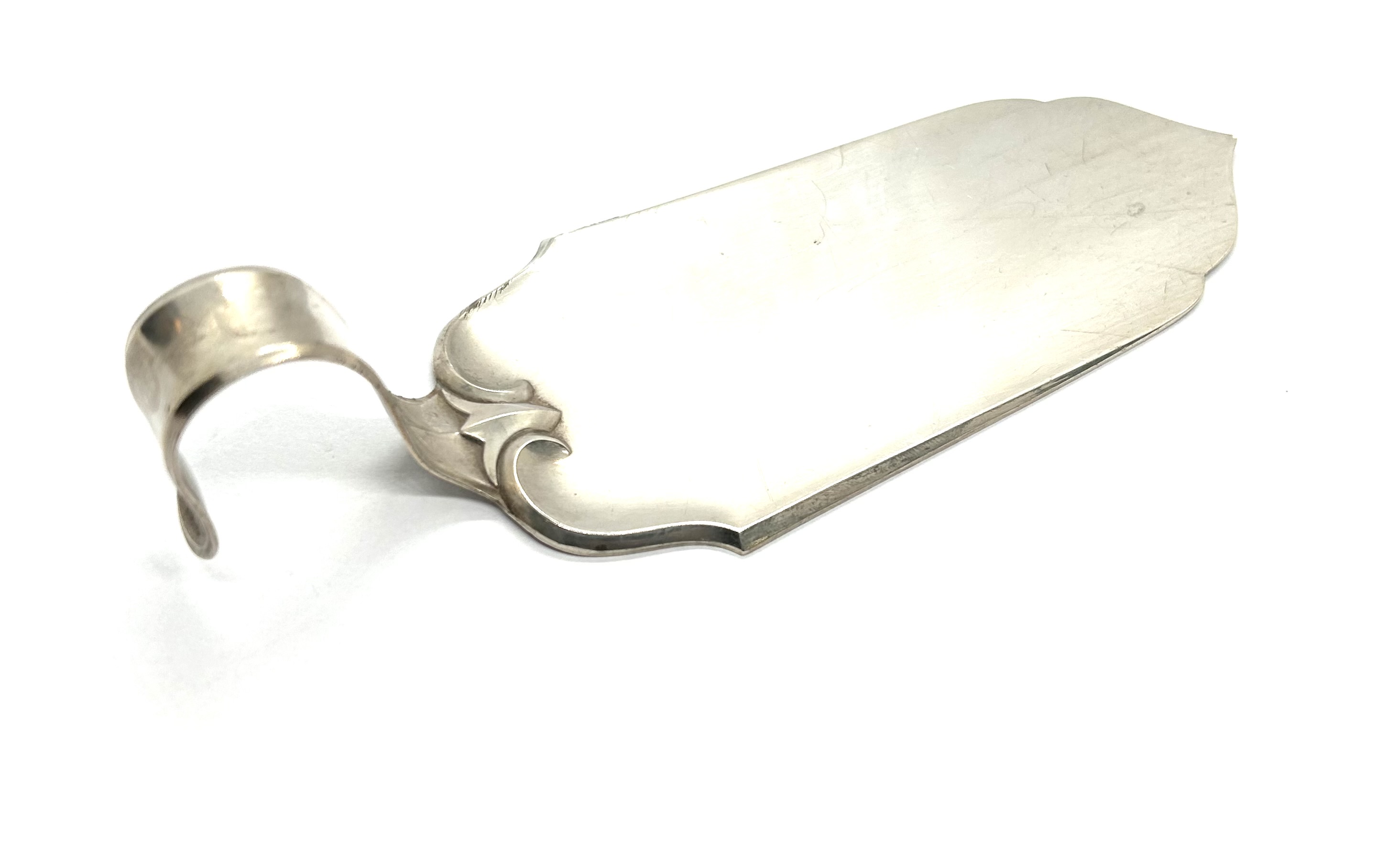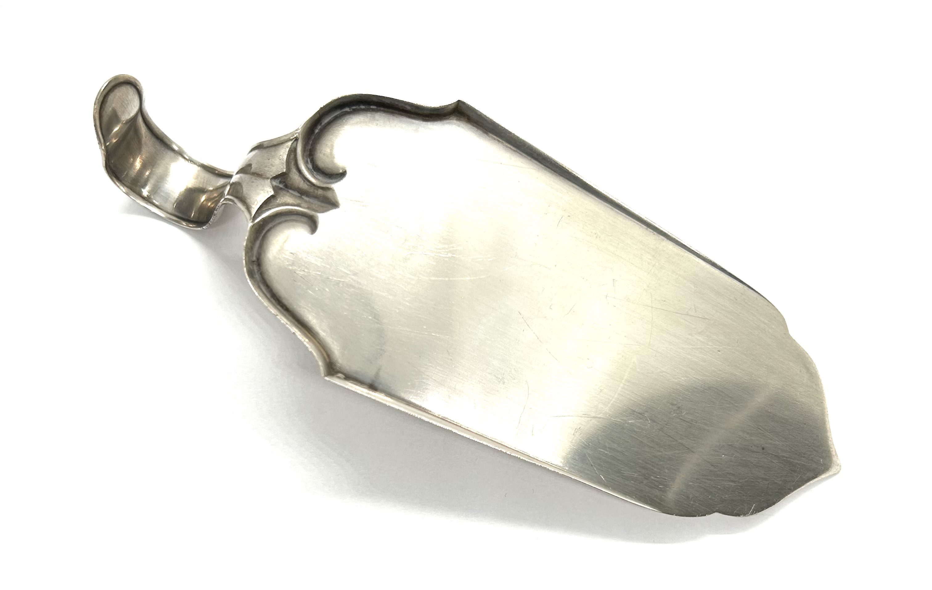 Stříbrná překládací lopatka z 20. let 20. století, střední Evropa. Ag btto 48,50 g, 800/1000; délka 15 cm, šířka 5,5 cm. K lopatce je přiloženo osvědčení puncovního úřadu.