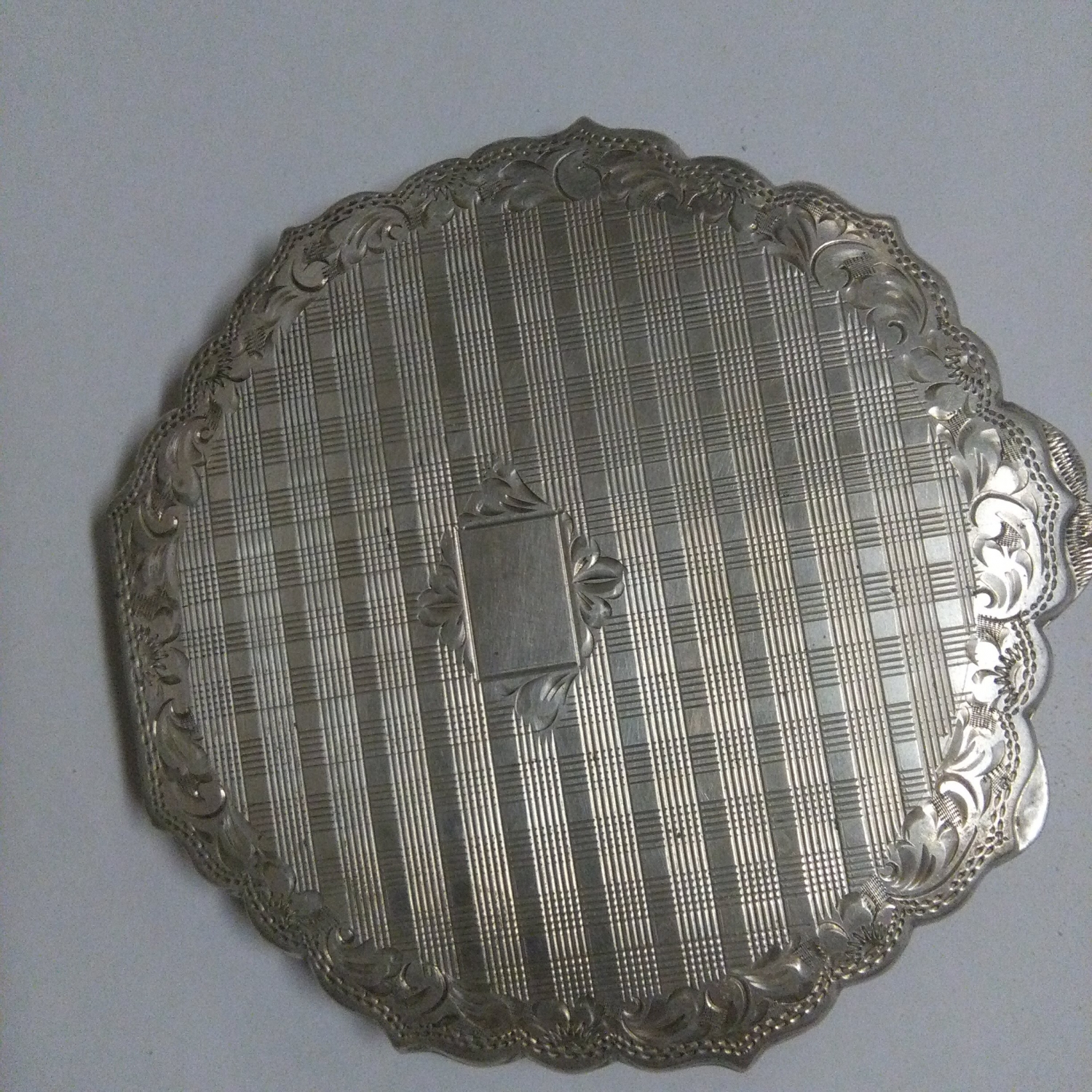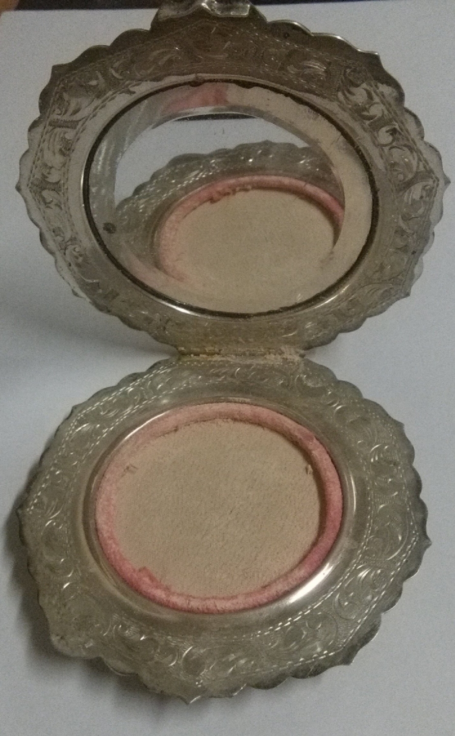 Československo 1. rep.; průměr vnější 9,8 cm, uvnitř průměr pudru 6 cm, průměr zrcádka 6,5 cm