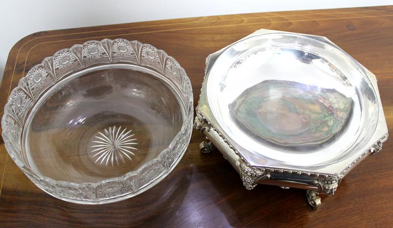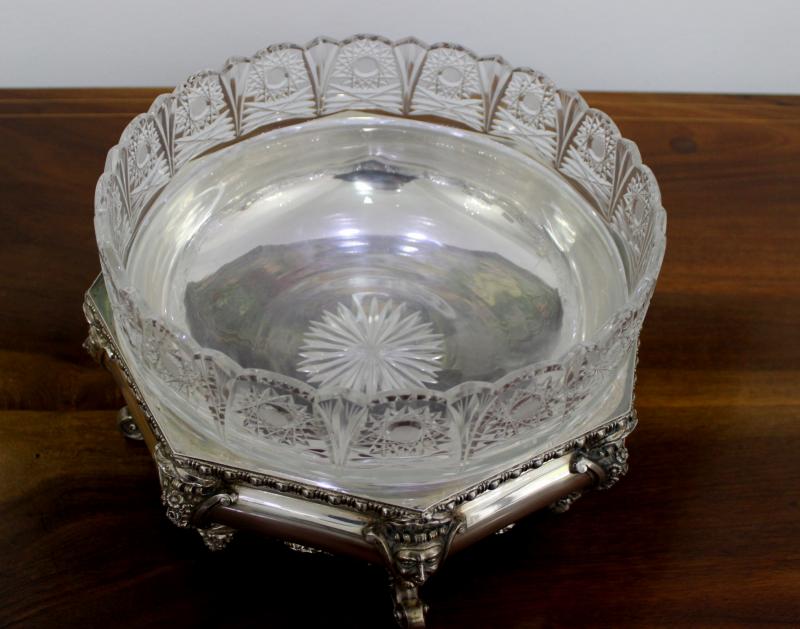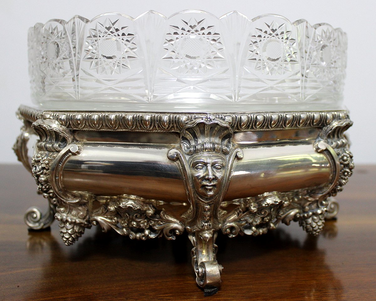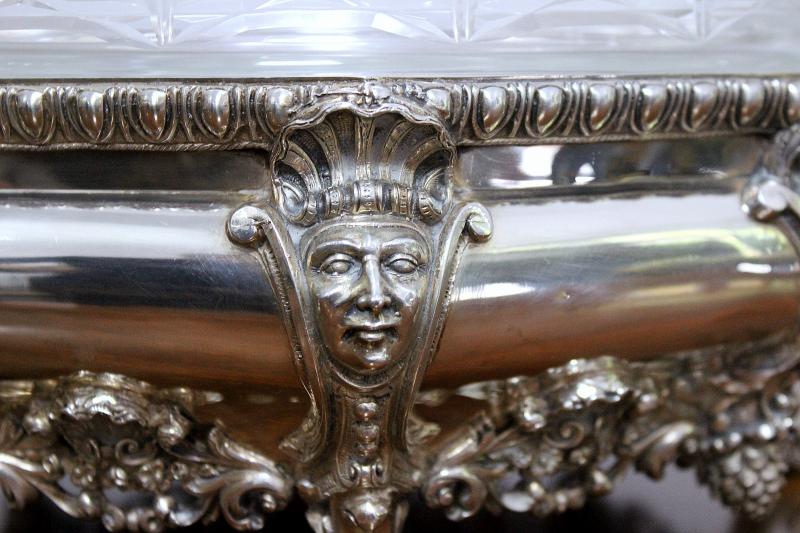 Stříbrná žardiniéra s křišťálovým sklem, Itálie, počátek 20. století.