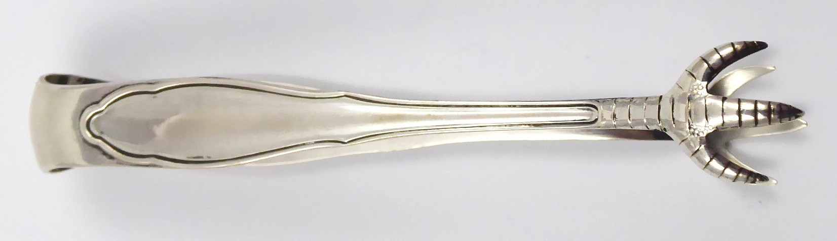Stříbro. Ryzost Ag 800/1000, celková hmotnost 15,03 g. Stříbrník: Karl Hohmann, Pforzheim. Stříbrné kleštičky na cukr zakončené úchyty stylizovanými do ptačích pařátů. Značeno: německý punc koruna a půlměsíc, mistrovská značka a československý punc pro cizí zboží lilie. Německo, Pforzheim 1920 – 1940. Délka 10 cm.