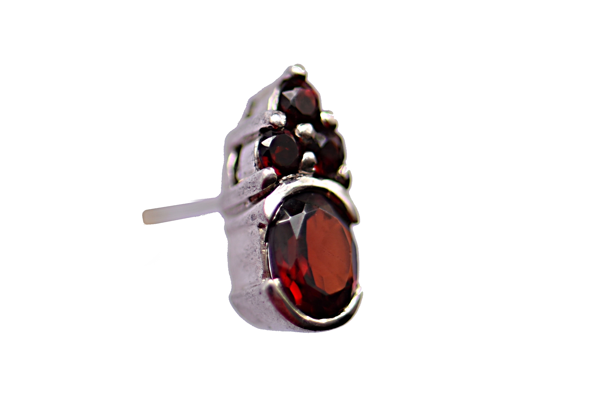 Popis: Náušnice pecičky s červenými kameny (pravděpod. syntetický granát), zapínání na puzetku.