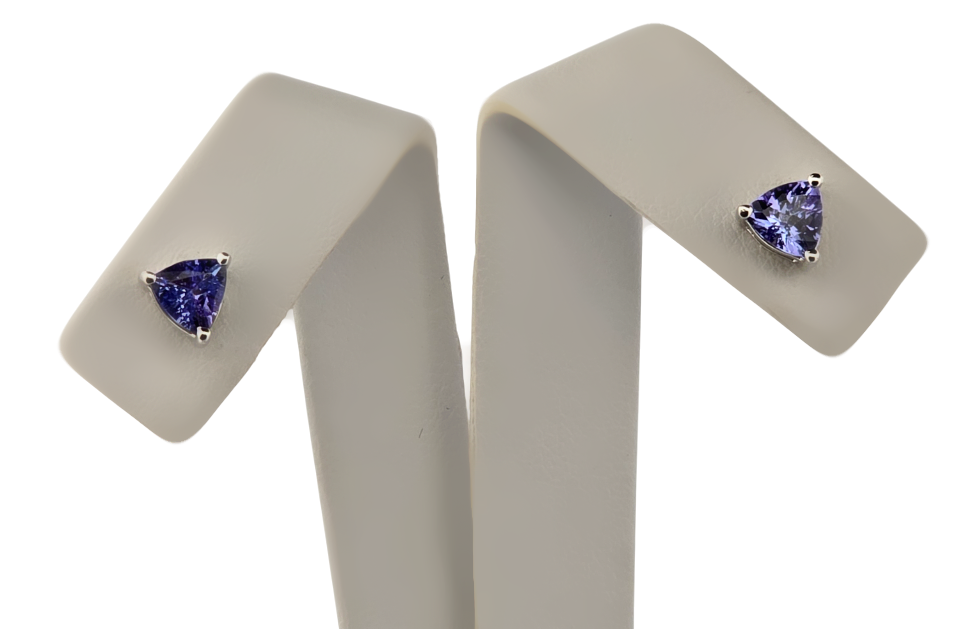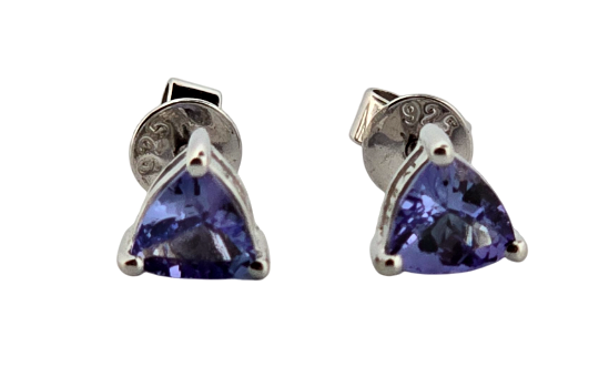 Popis: Stříbrné náušnice pecky s přírodním tanzanitem, trilion tvar o celkové váze cca 1 ct. Zapínání na puzetku.