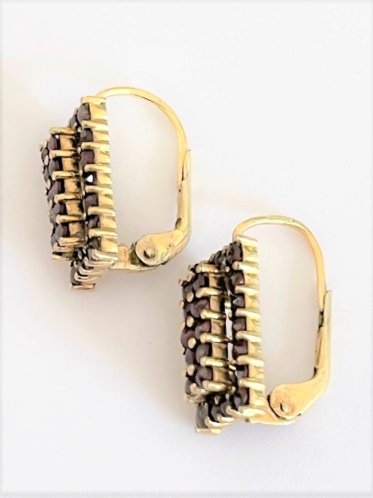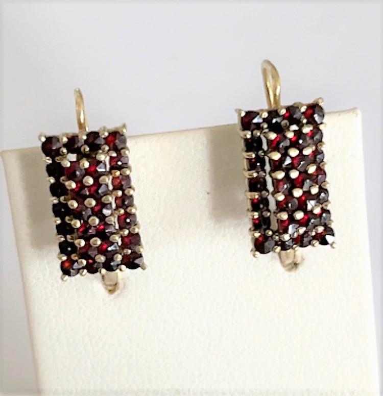 Elegantní stříbrné náušnice s českými granáty AG 925/1000 váha náušnic brutto 4,31 gramů – jemně pozlaceno. Hezký stav