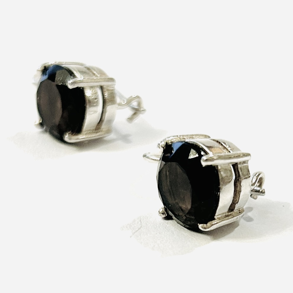 Nadčasové, minimalistické náušnice s hlavicí osazenou přírodními záhnědami kulatého briliantového brusu, fasováno krapnami. Kvalitní netuzemská práce z konce 20. či počátku 21. století.