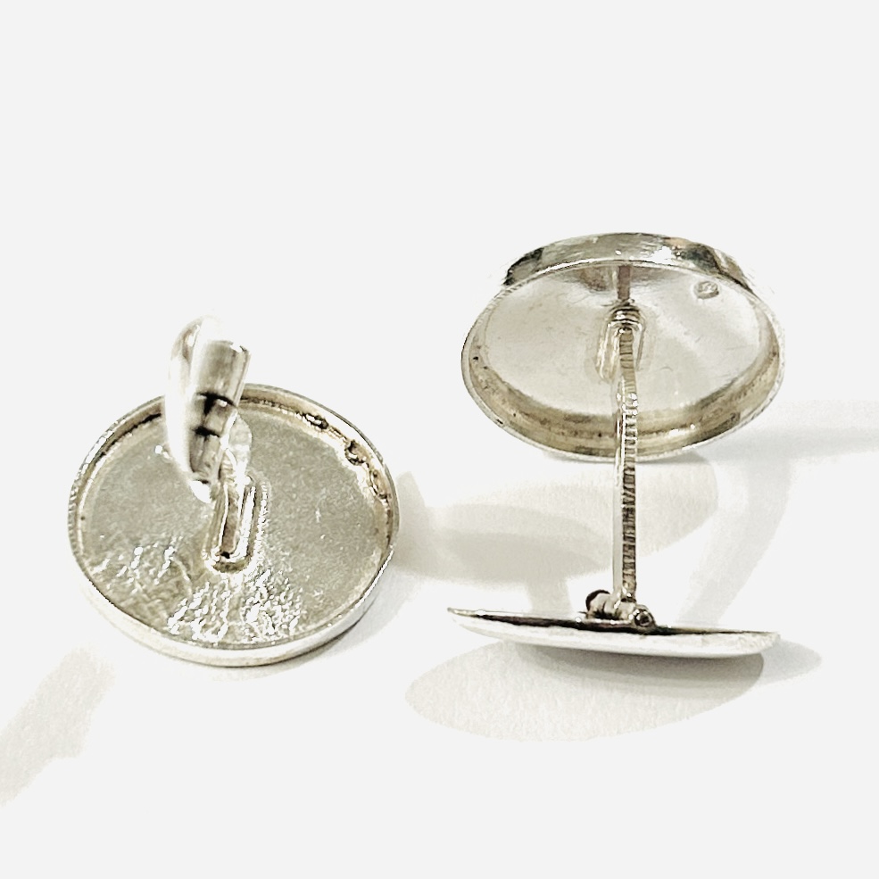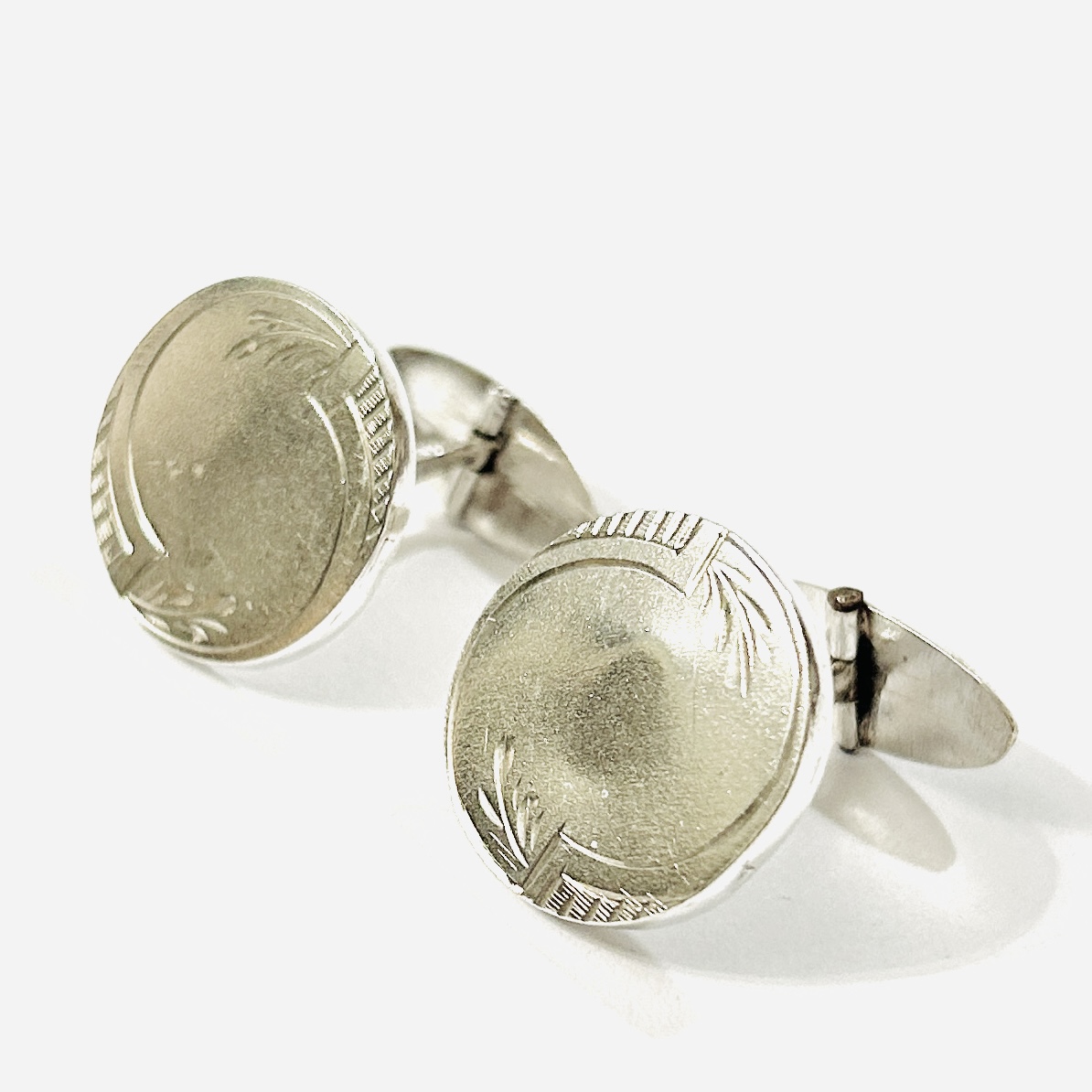 Elegantní, kulaté manžetové knoflíčky z období secese, při kraji dekorativně ryto. Polská (Varšava) zlatnická práce z počátku 20. století.