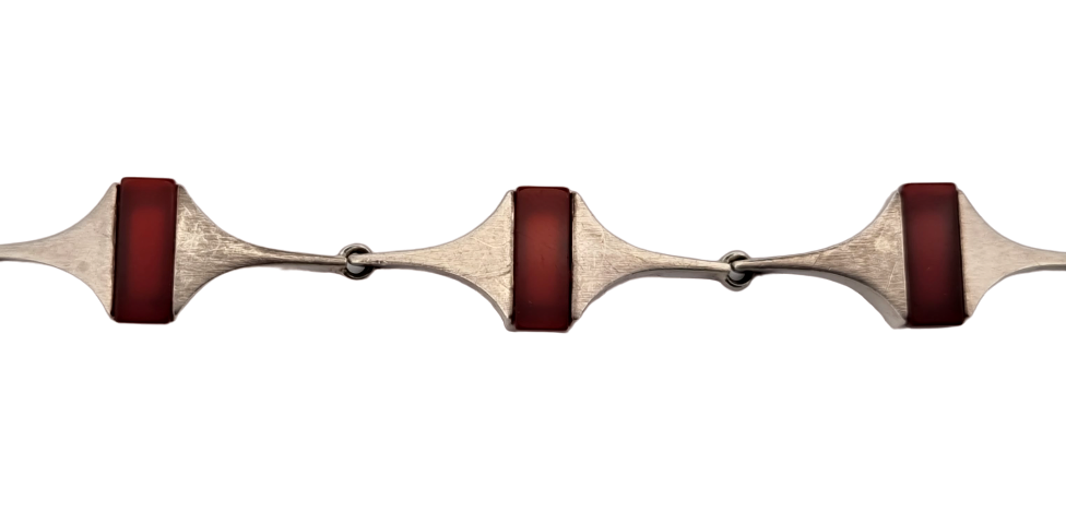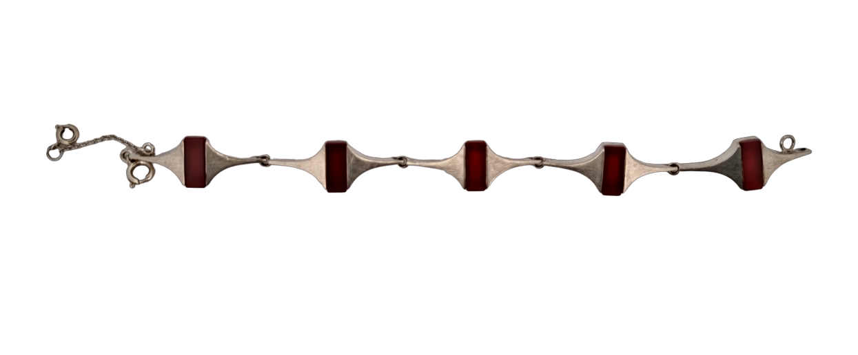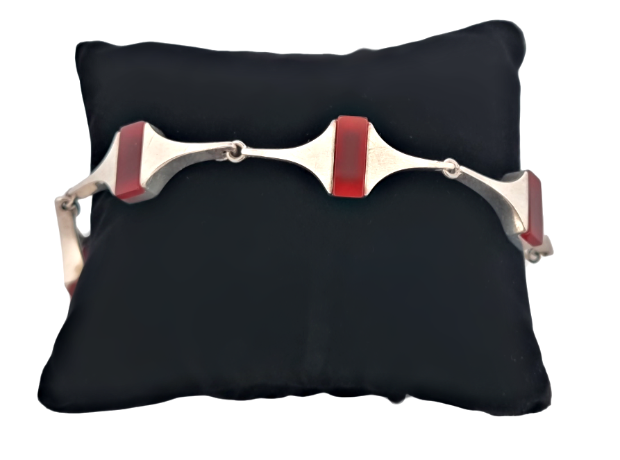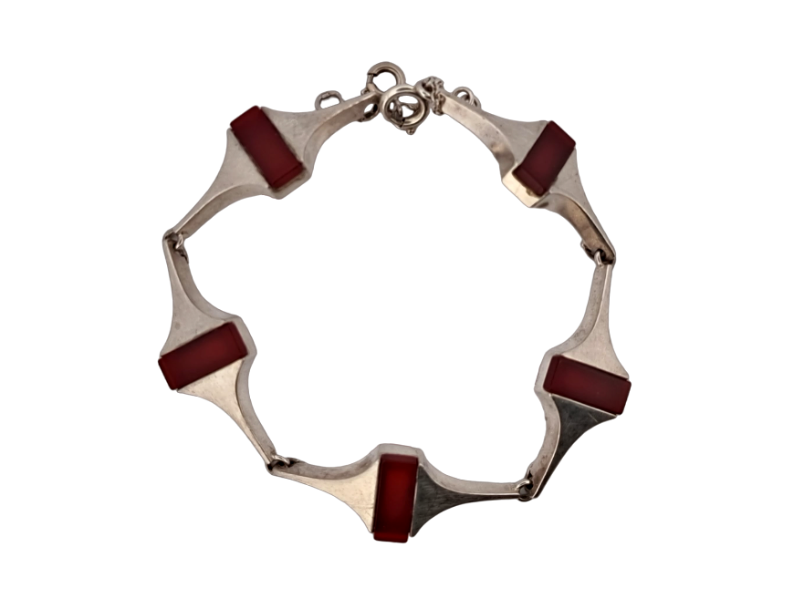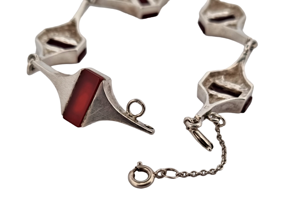 Popis: Stříbrný náramek art deco s přírodními kareneoly. Dvojí zapínání pro větší bezpečnost. Ověřeno Puncovním úřadem.