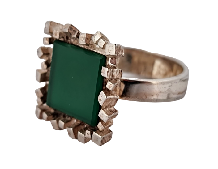 Prsten netradiční, hranatý tvar, autorský design, synt. kámen avanturín..