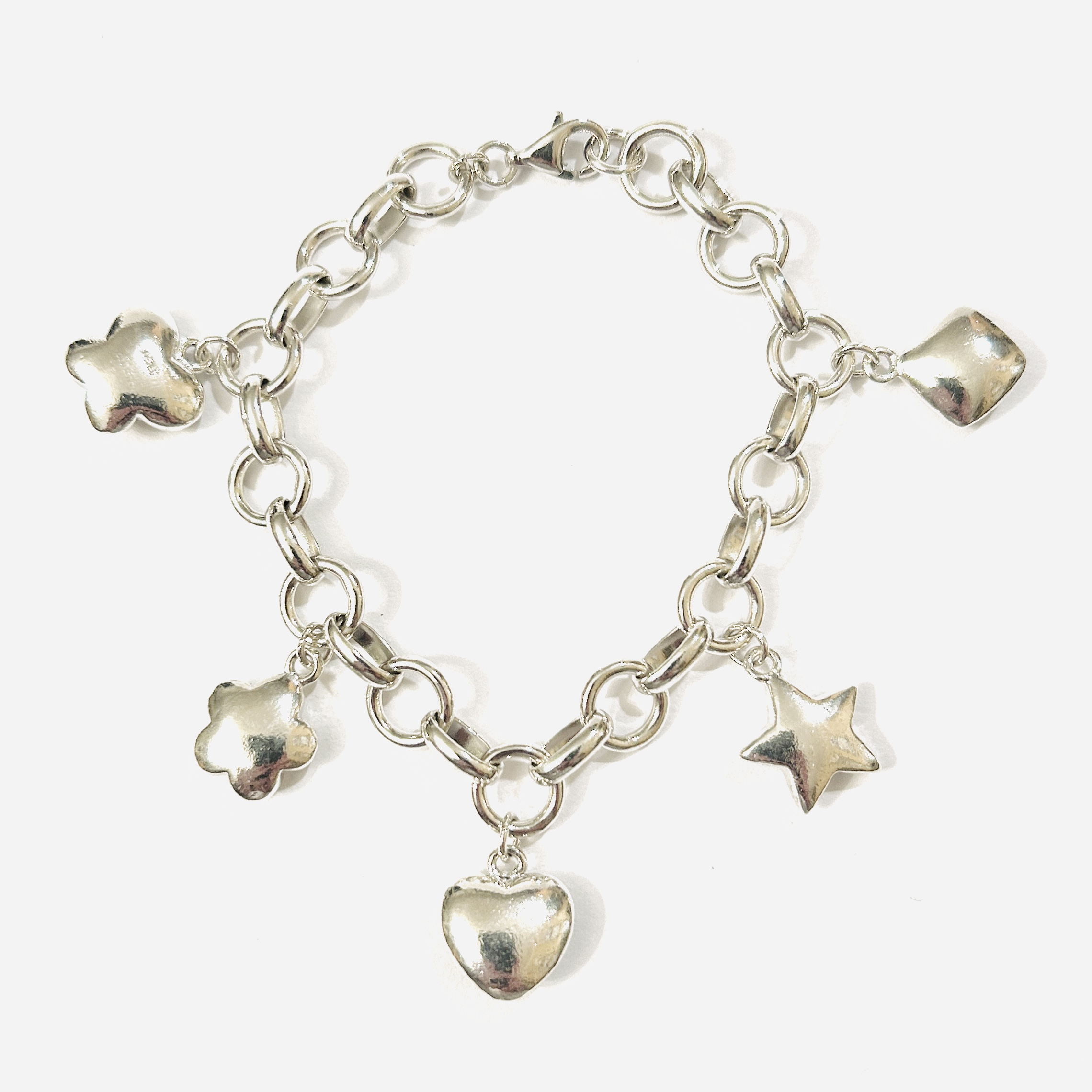 Zhotoveno z nezlaceného stříbra o ryzosti 925/1000; punc S-61 (kozlík 2) na koncovém očku, ryzostní číslo a značka výrobce na jednom z ověsků. Hmotnost 23,62 g, délka 18,5 cm, šířka vazby 9 mm. Karabinkové zapínání v pořádku, celkově v zachovalém stavu, odborně vyšištěno a vyleštěno zlatníkem.