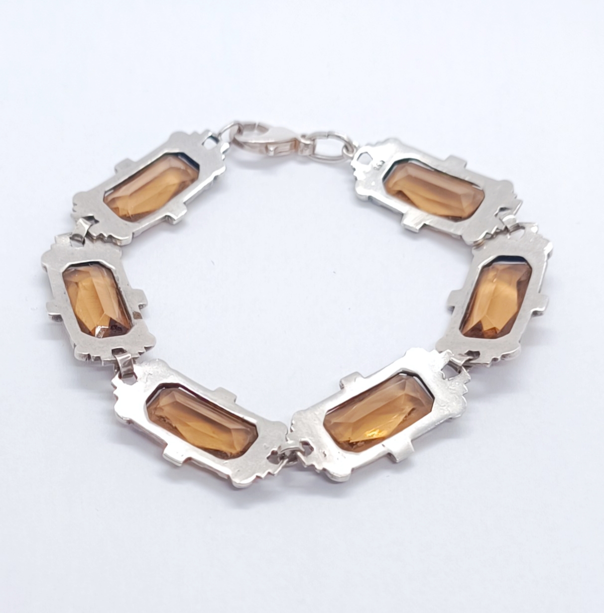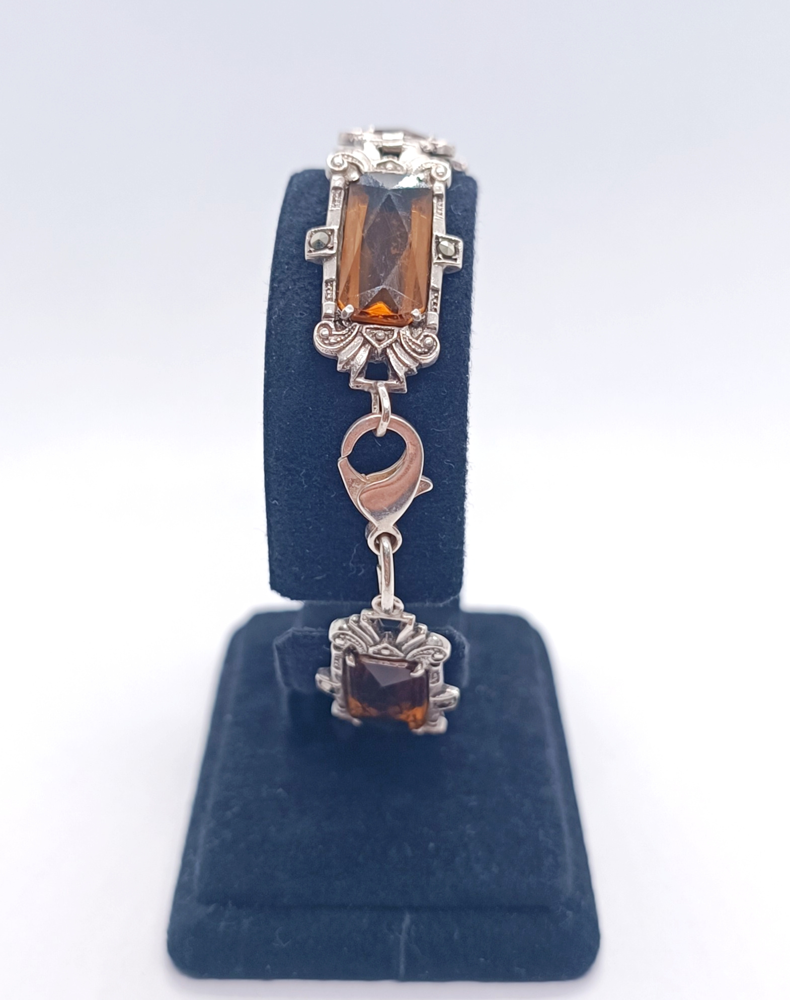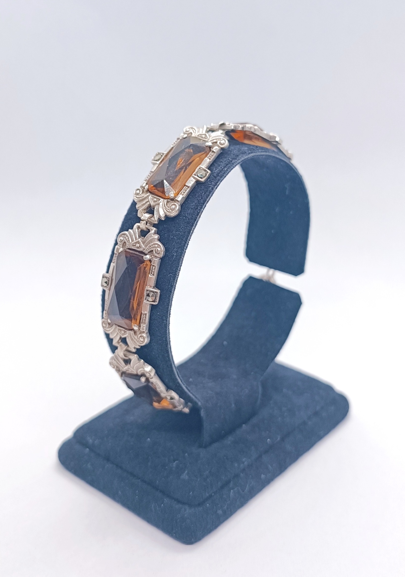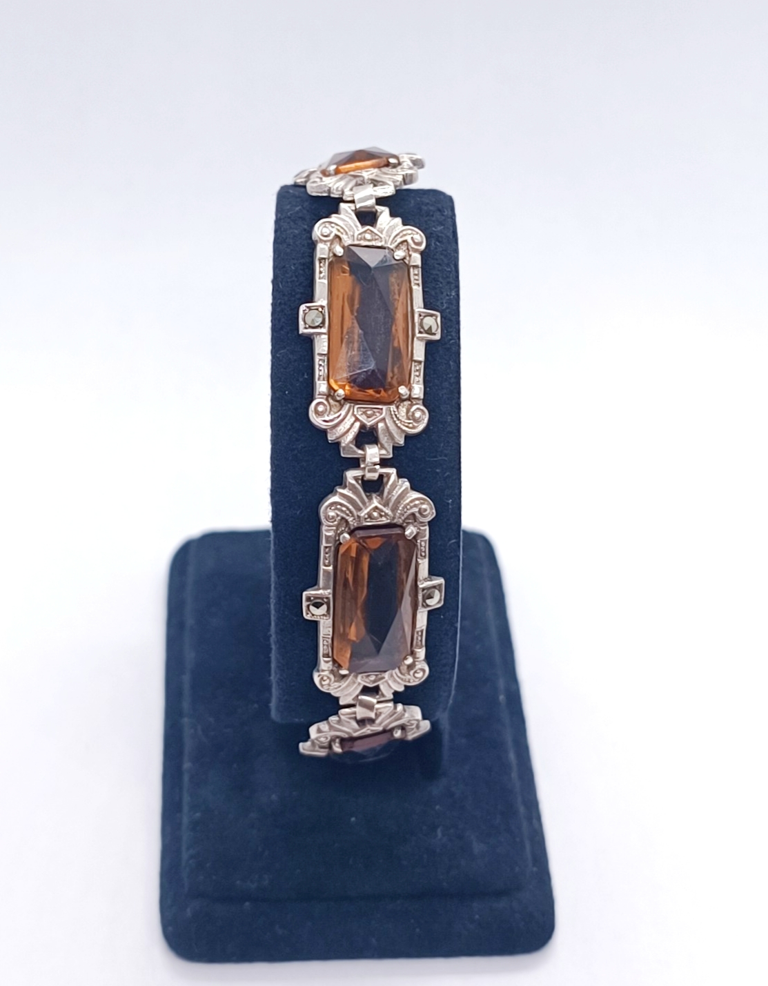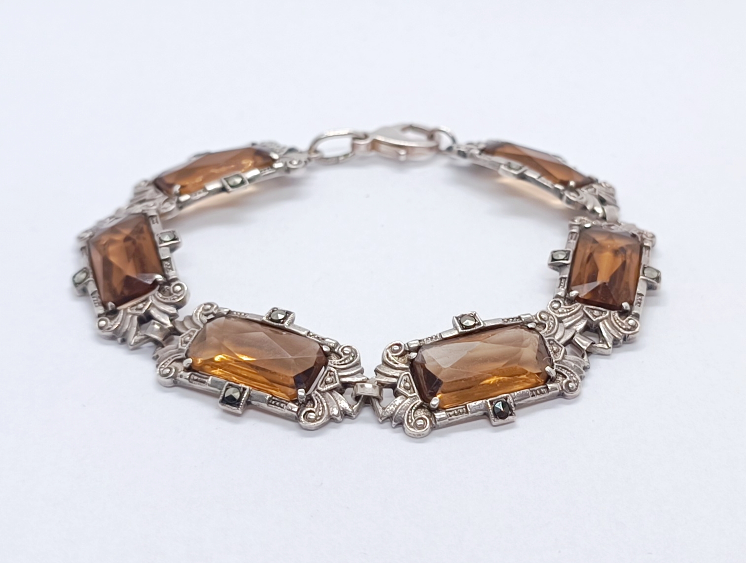 Stříbrný článkový náramek s broušenými citríny a markazity, Ag btto 18,40g/935/1000, západní Evropa, 30. léta 20. století, atest puncovního úřadu; délka 18 cm, šířka 1,5 cm