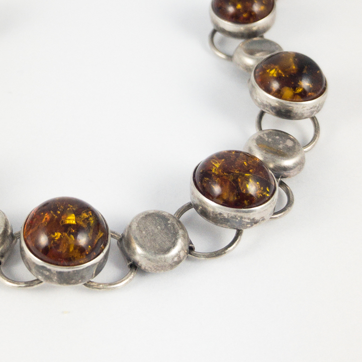 Stříbrný článkový náramek s jantarem, 30. léta 20. století, období Art Deco,