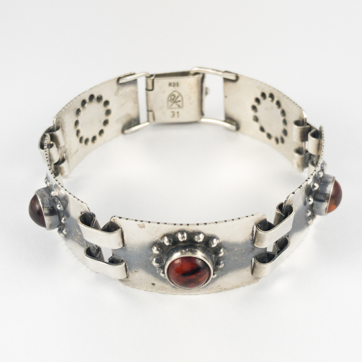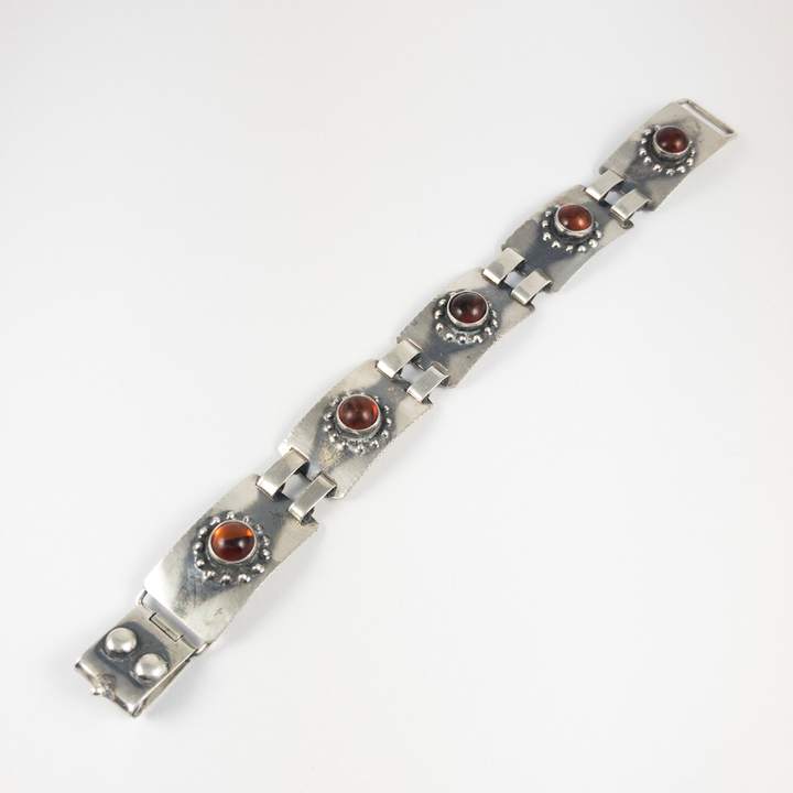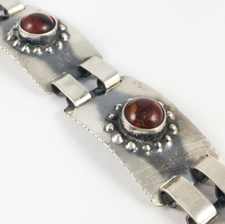 Stříbrný článkový náramek s jantarem, 20. léta 20. století, období Art Deco,