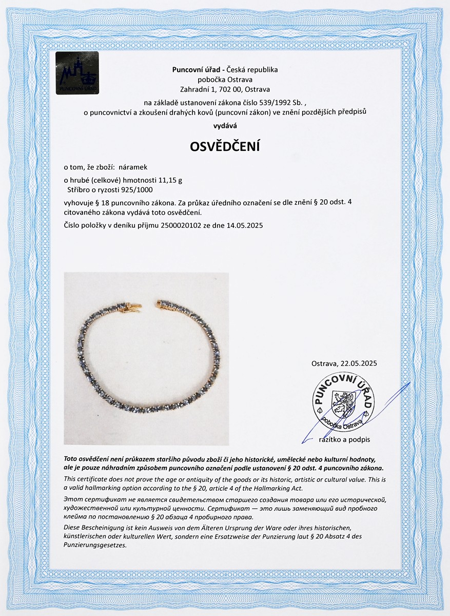 • osvědčení Puncovního úřadu České republiky