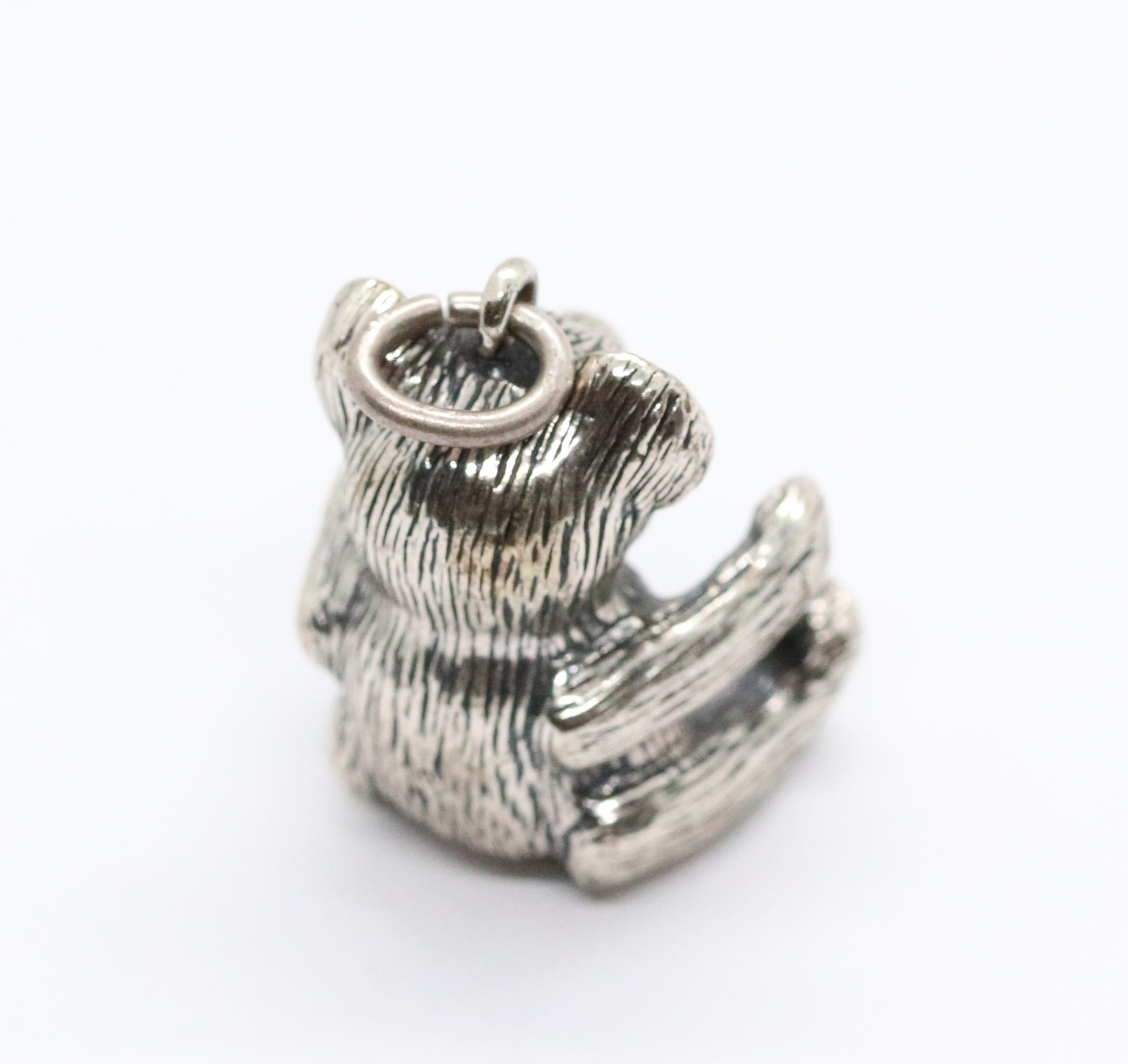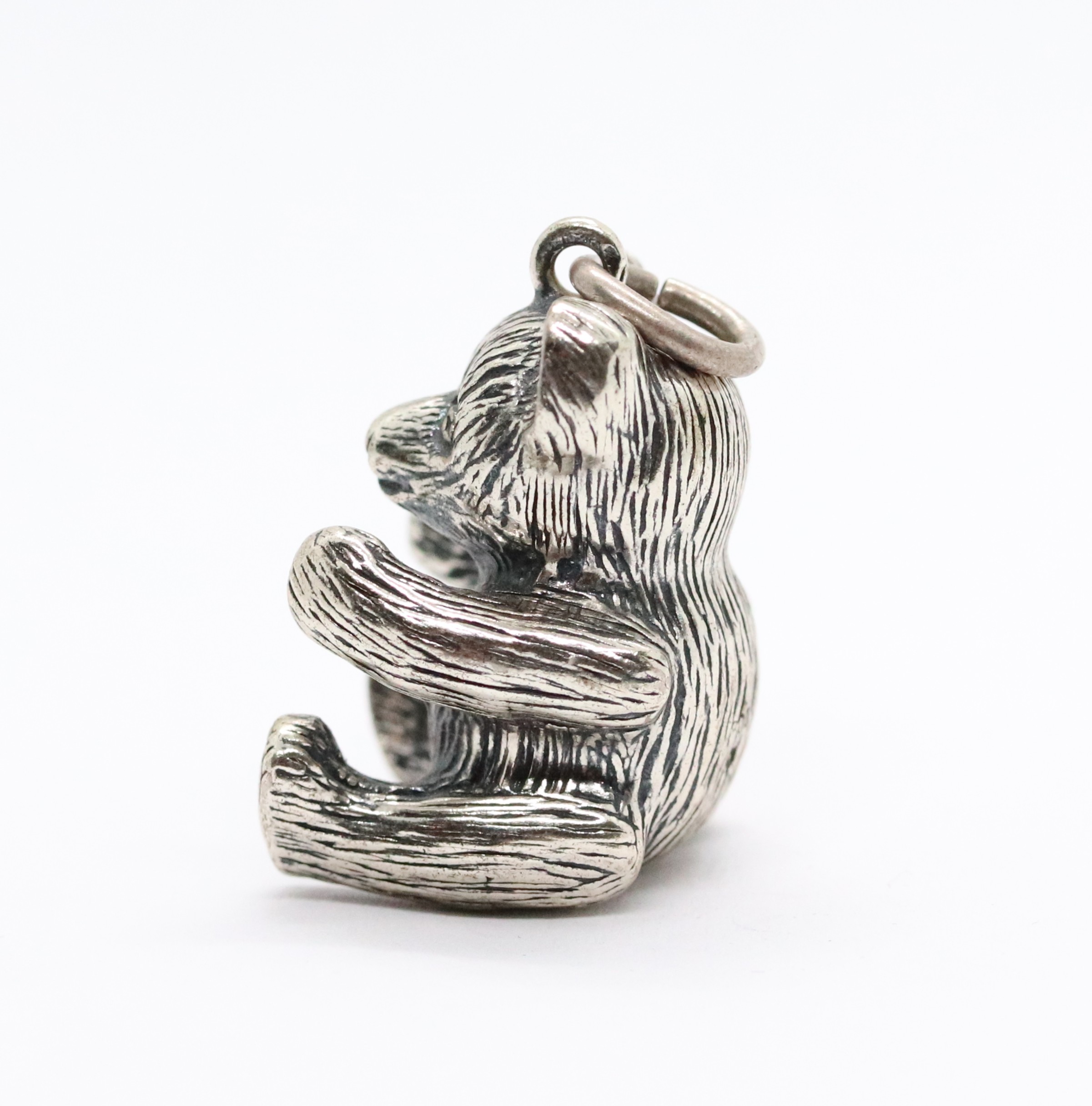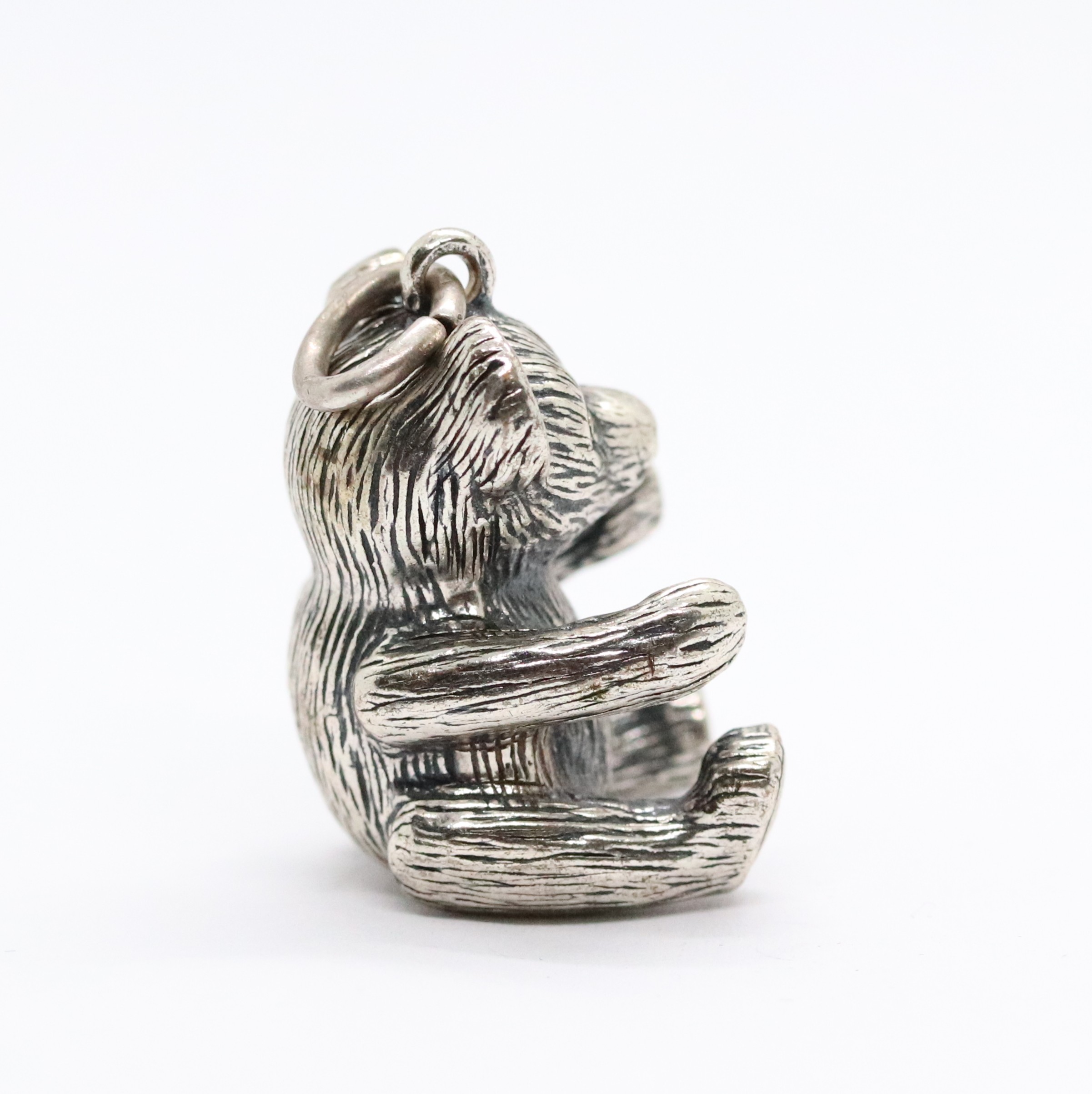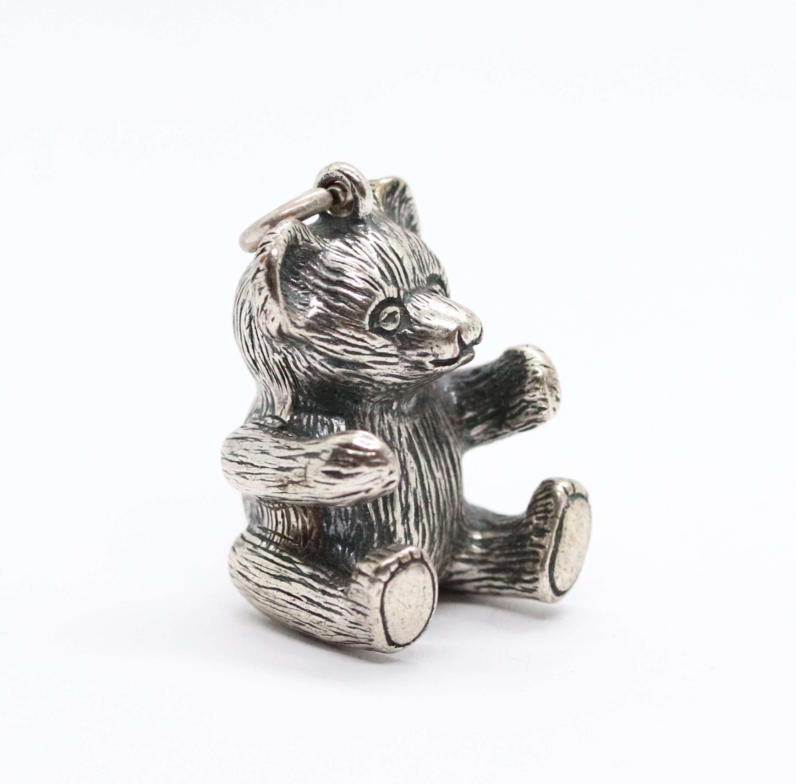Starožitný stříbrný přívěsek v podobě medvídka, Ag 16,85g/800/1000, zdobený gilošováním, západní Evropa, 30. léta 20. století, atest puncovního úřadu; výška 2,5 cm, šířka 2 cm