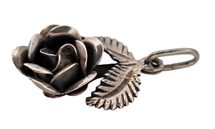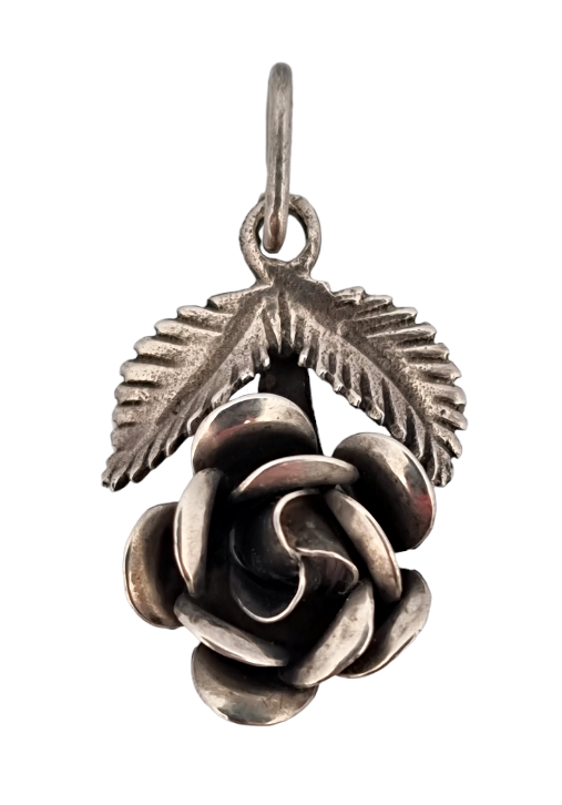 Popis: Stříbrný přívěsek růžička. Ruční práce. Ověřeno Puncovním úřadem.