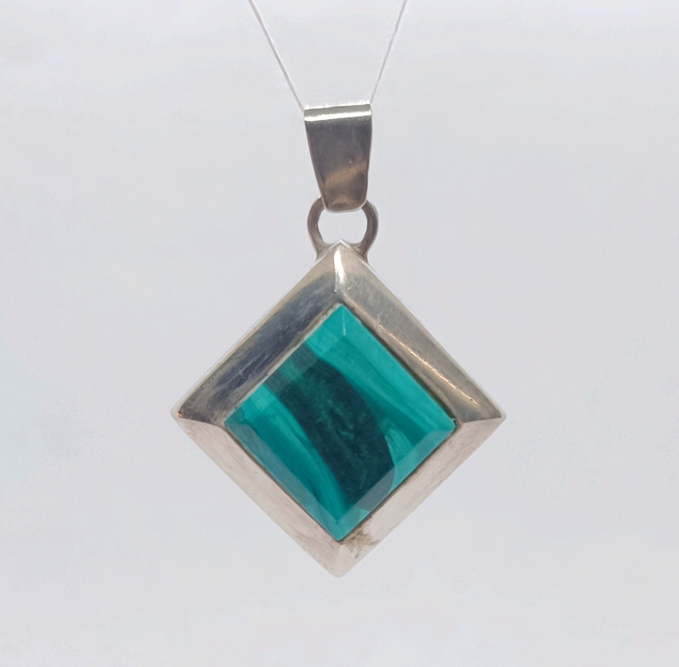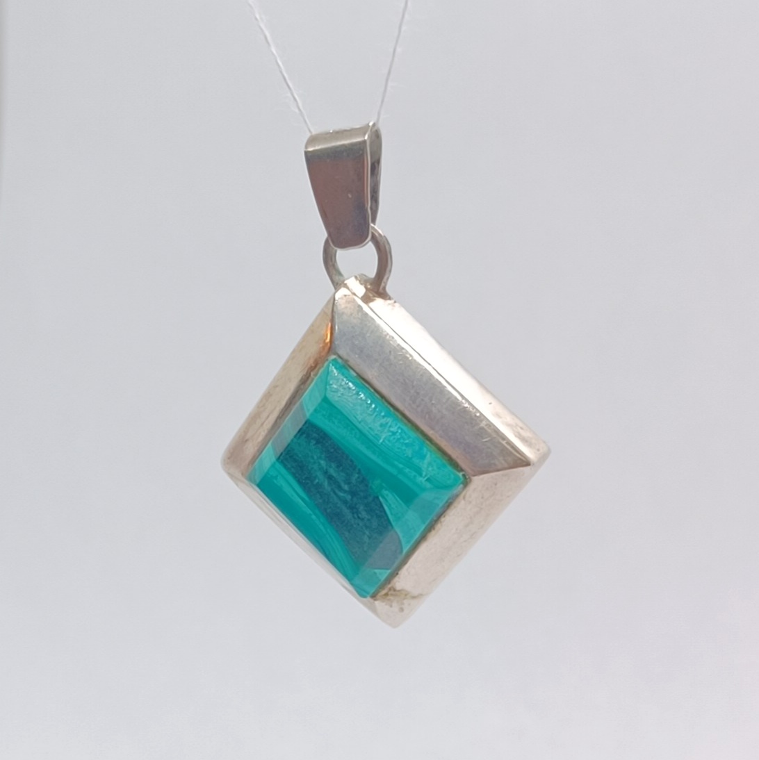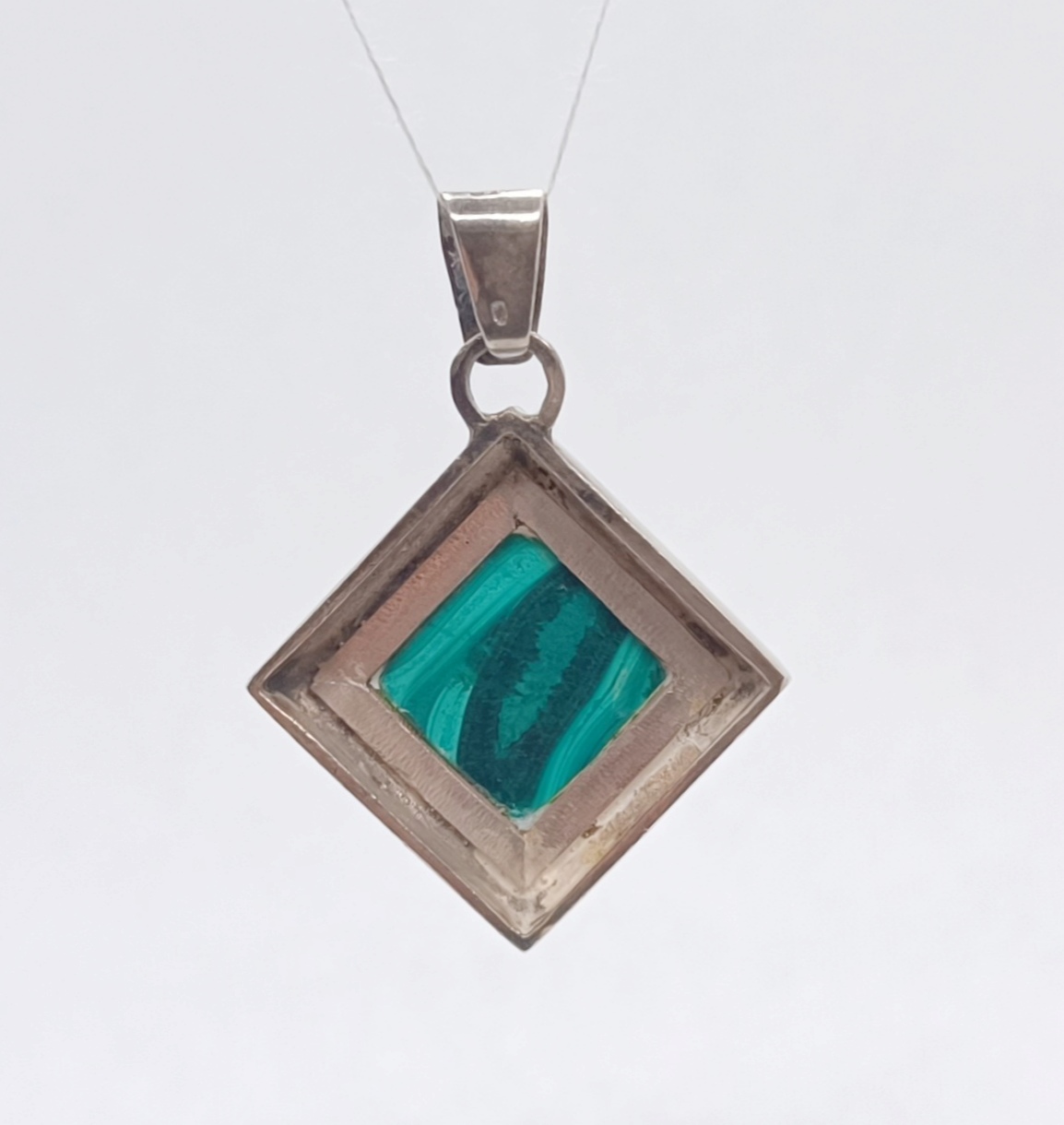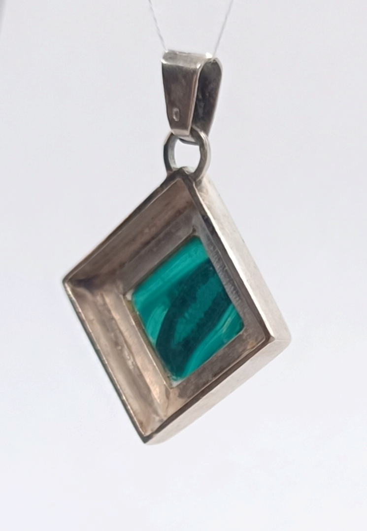 Stříbrný art deco přívěsek s leštěným malachitem, Ag btto 23,90g/925/1000, Západní Evropa, 30. léta 20. století, nově puncováno; délka s ouškem 4 cm, šířka 3 cm