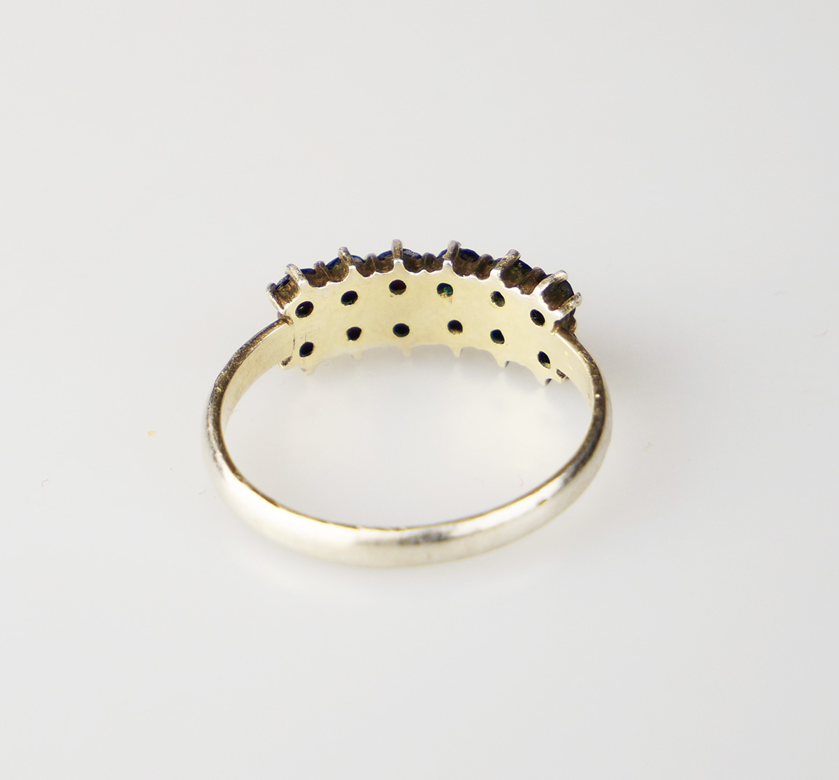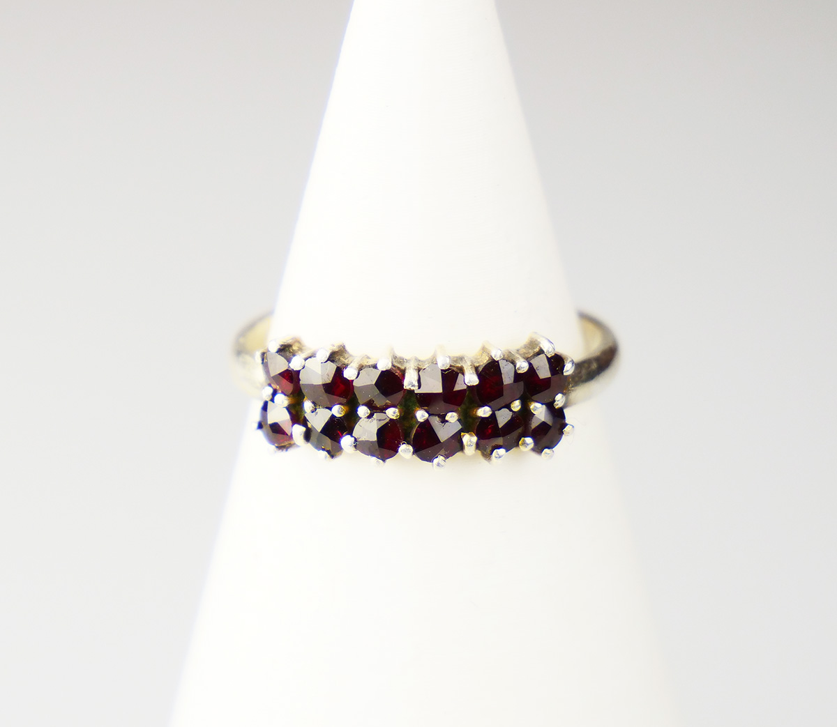 stříbrný prsten s granáty, Ag btto 2,00 g/835/1000, Čechy, kolem r. 1960, puncováno, velikost prstenu 55,5