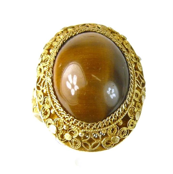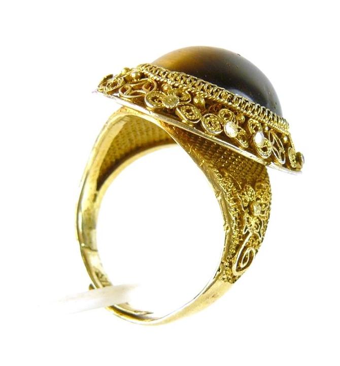 Detailní popis produktu Stříbrný prsten ze zlaceného filigránového stříbra, tygří oko,
