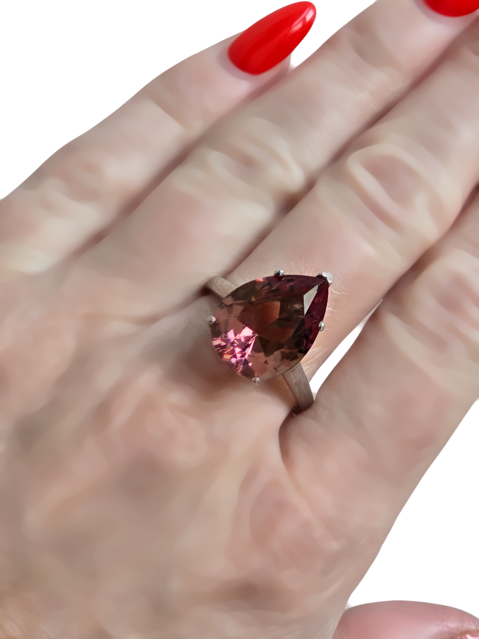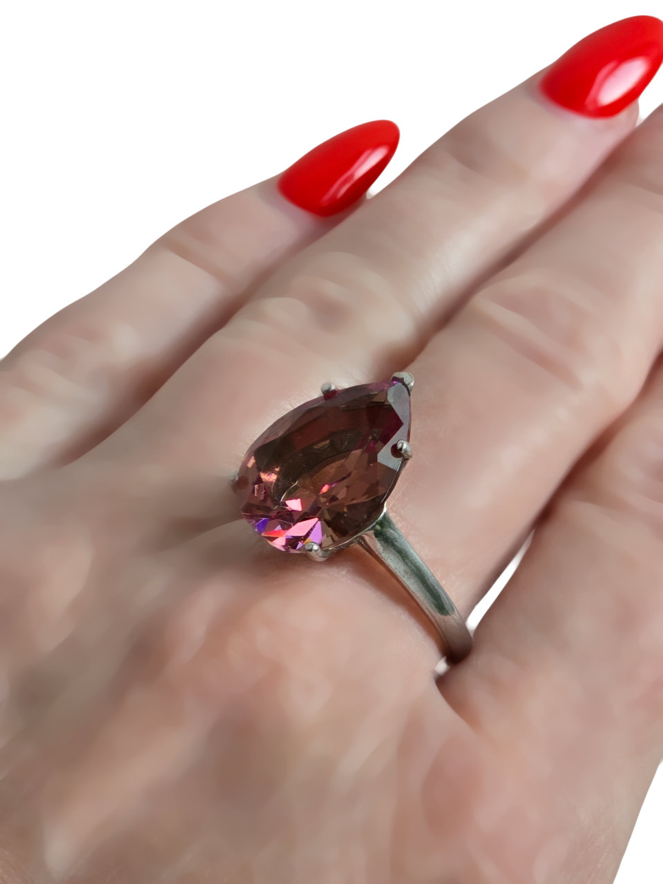 Popis: Stříbrný prsten se syntetickým sultanitem, kapkového tvaru. Překrásně třpytivý, mění barvu dle intenzity a lomu světla (hnědá, zelená, oranžová, růžová, žlutá, modrá). Robustní vzhled.